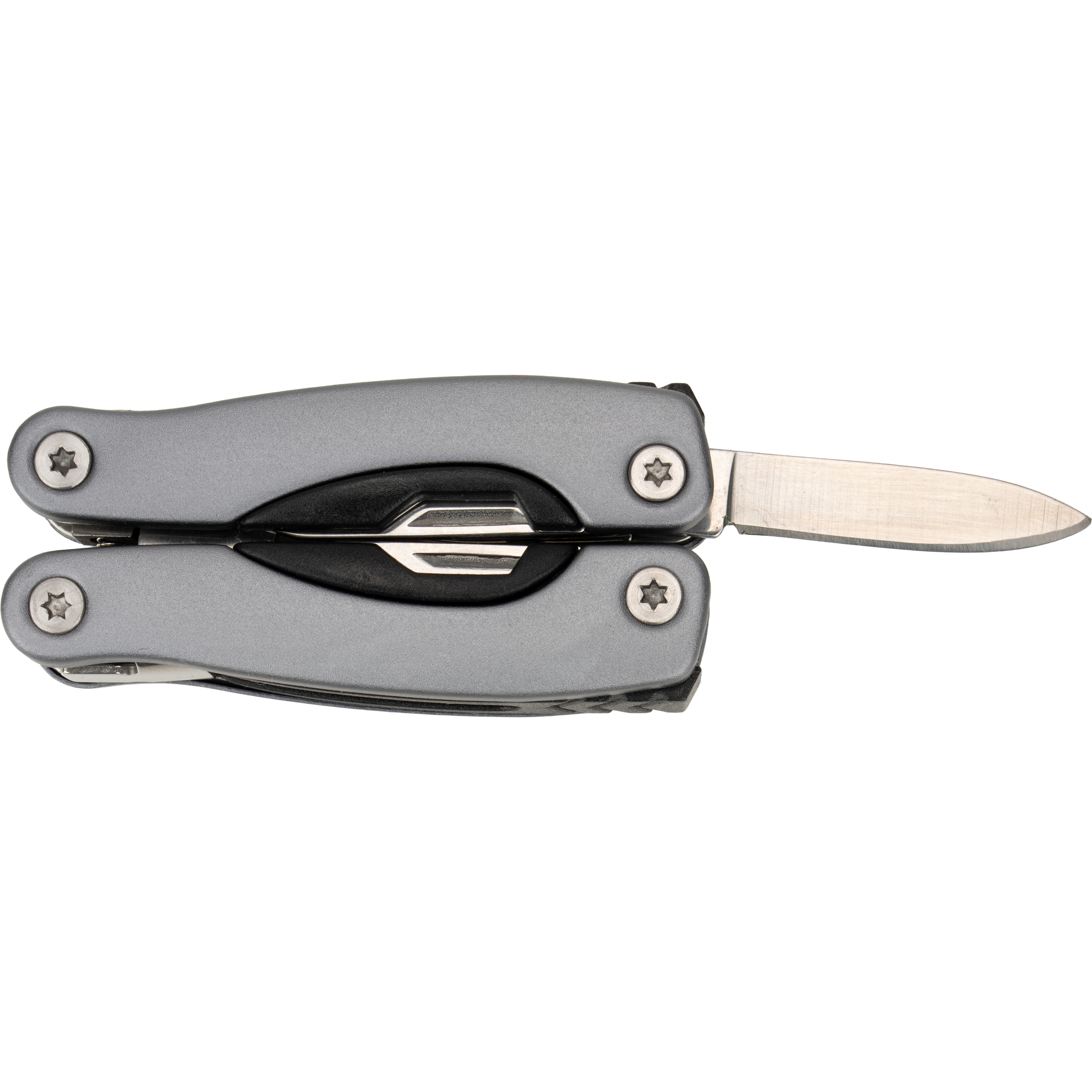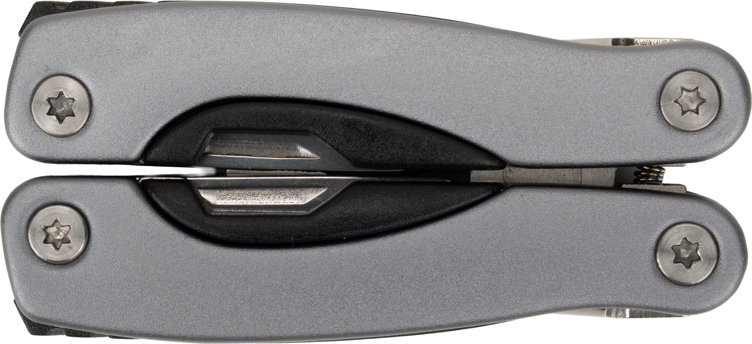 Multitool posiada 13 narzędzi, m.in.: kombinerki, pilnik, śrubokręt płaski i Philips, nóż, piłka, otwieracz do butelek i konserw. Narzędzie zapakowane w neoprenowy pokrowiec.