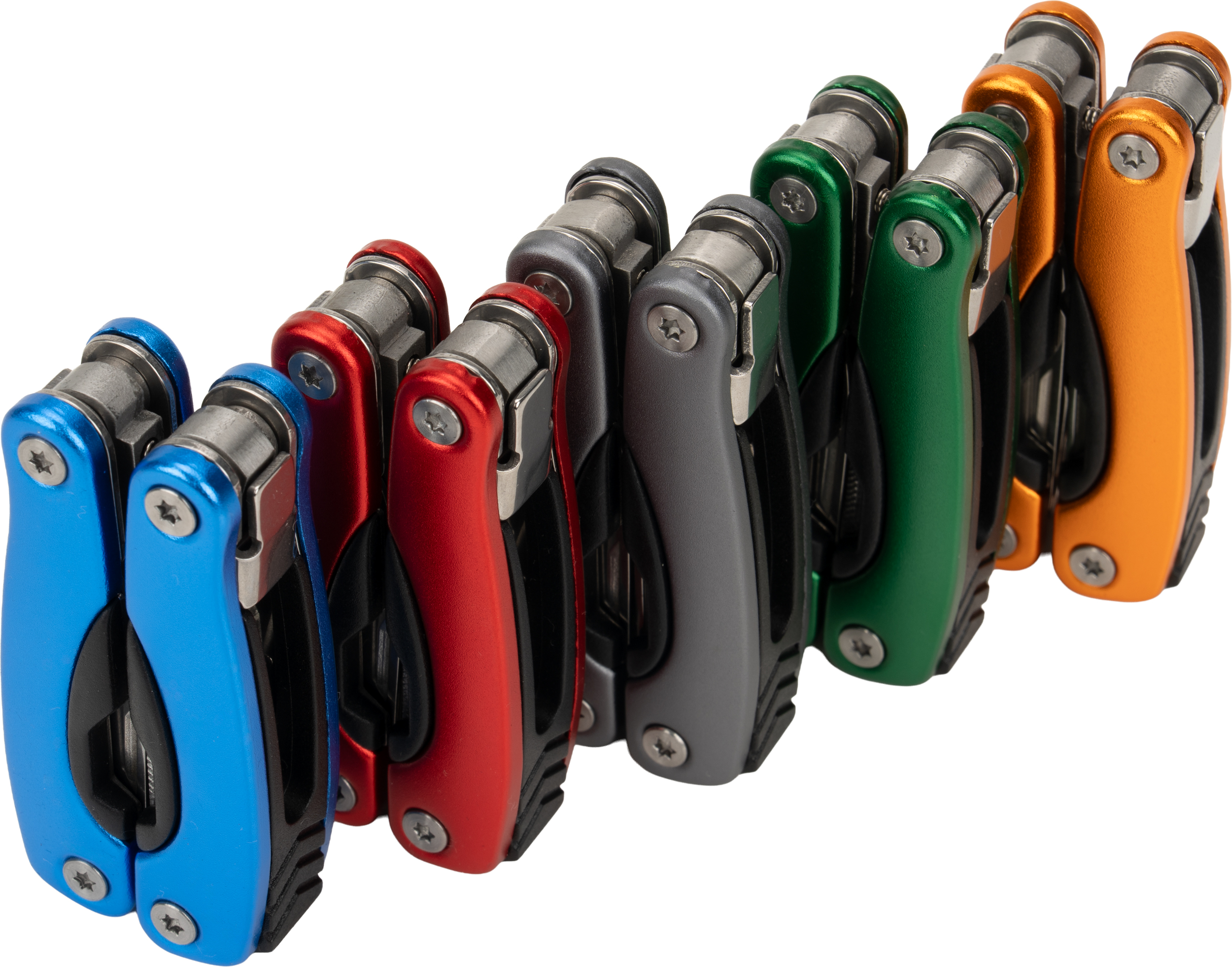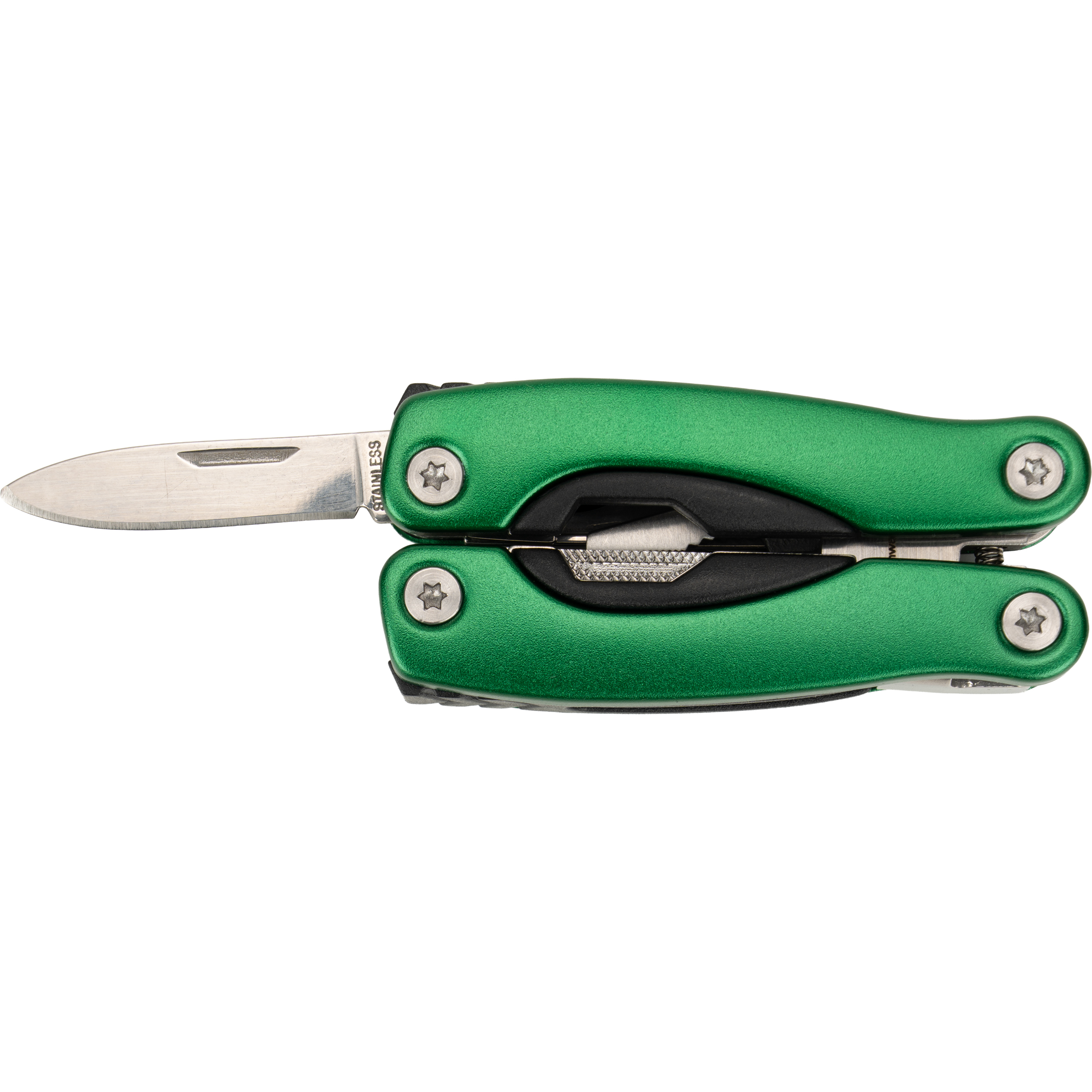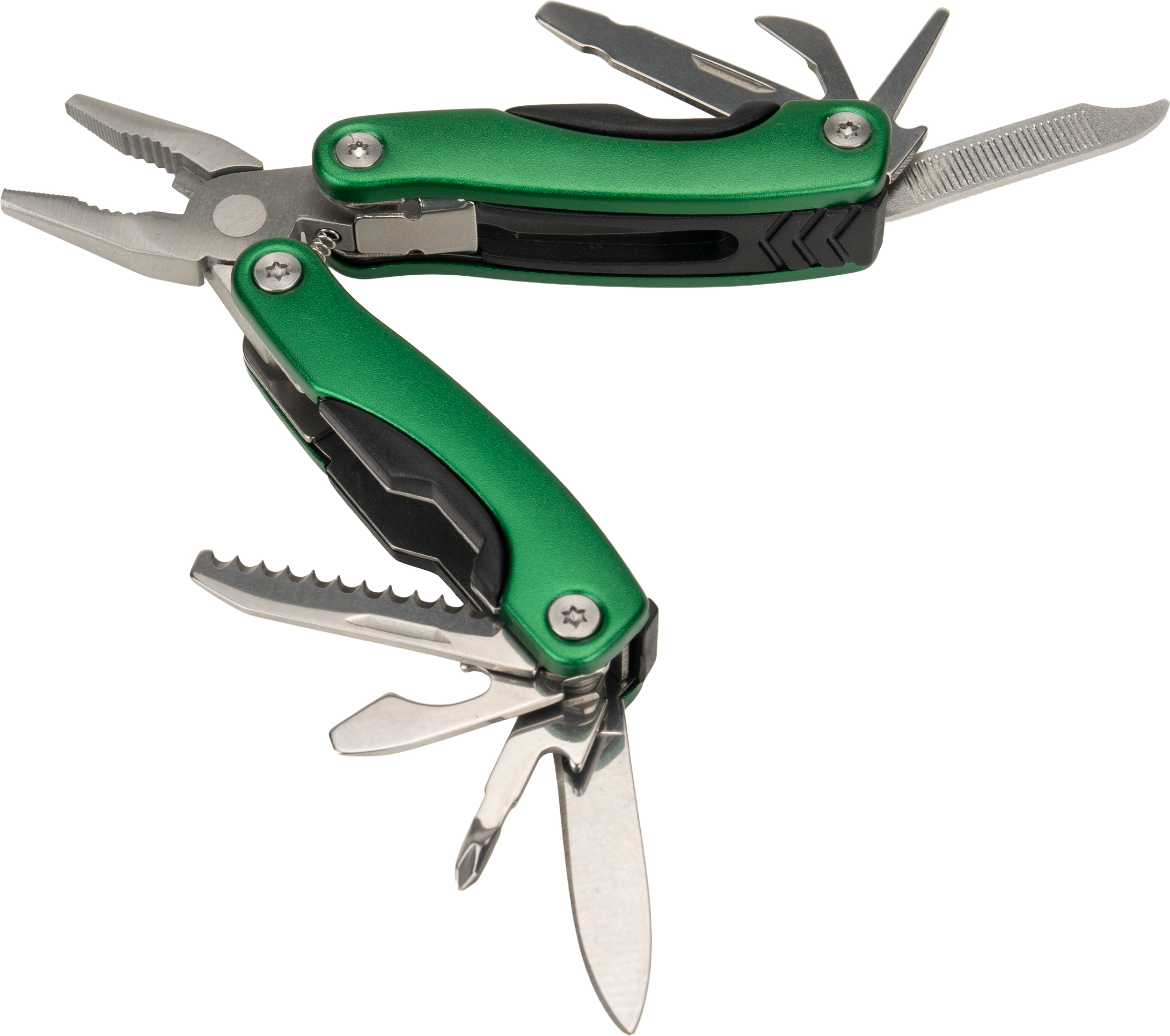 Multitool posiada 13 narzędzi, m.in.: kombinerki, pilnik, śrubokręt płaski i Philips, nóż, piłka, otwieracz do butelek i konserw. Narzędzie zapakowane w neoprenowy pokrowiec.