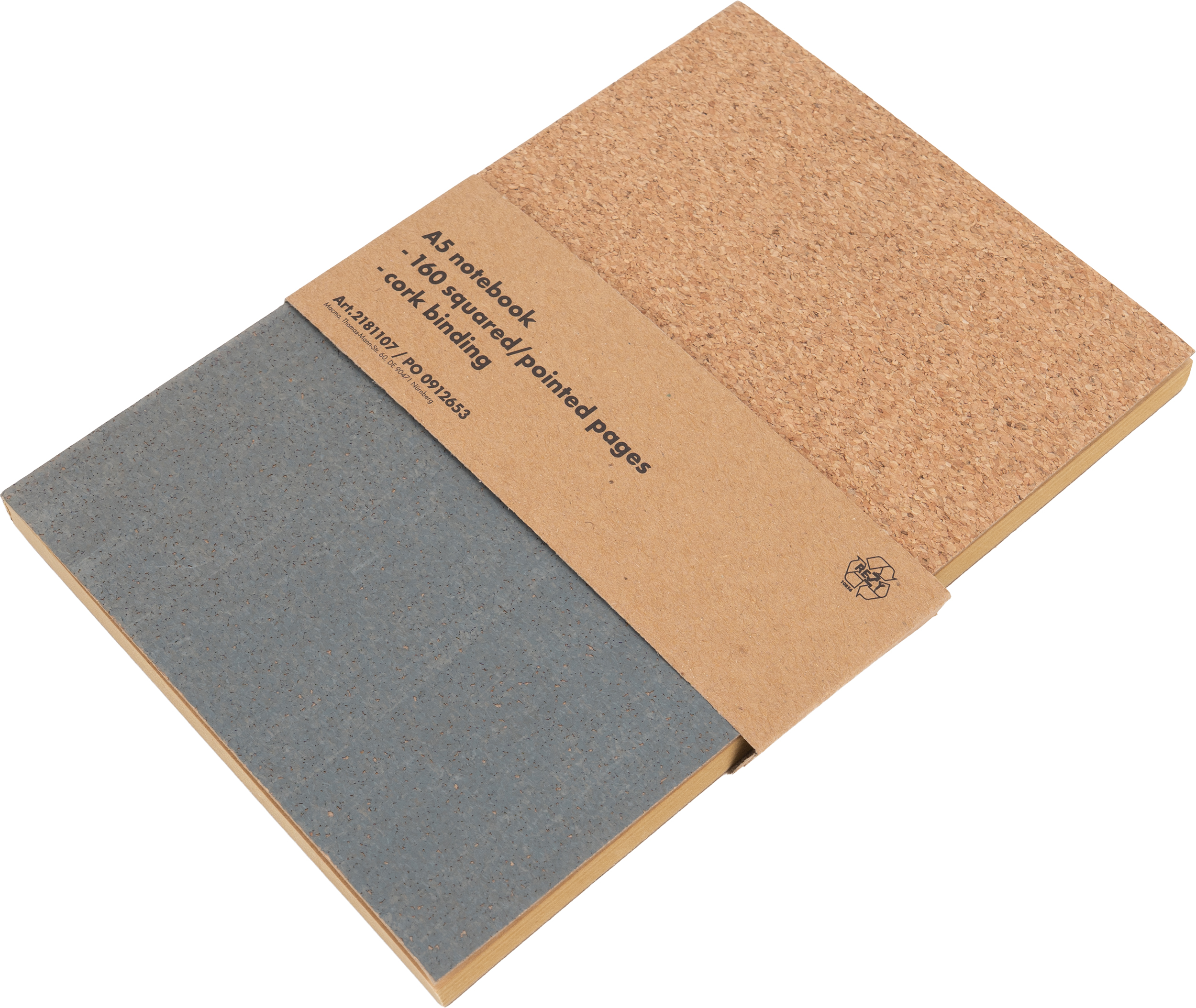 Notes o formacie A5 ze 160 stronami w kropki i okładką do połowy wykonaną z korka.
