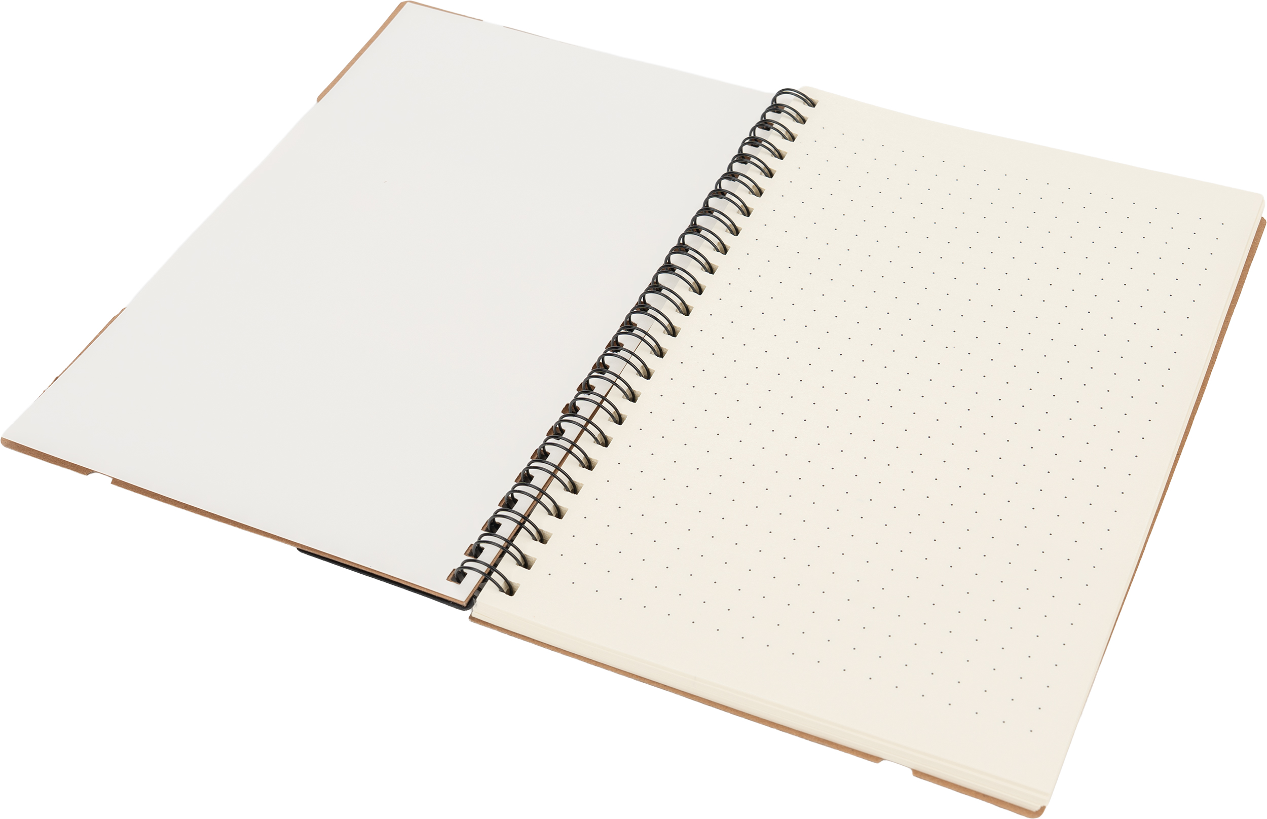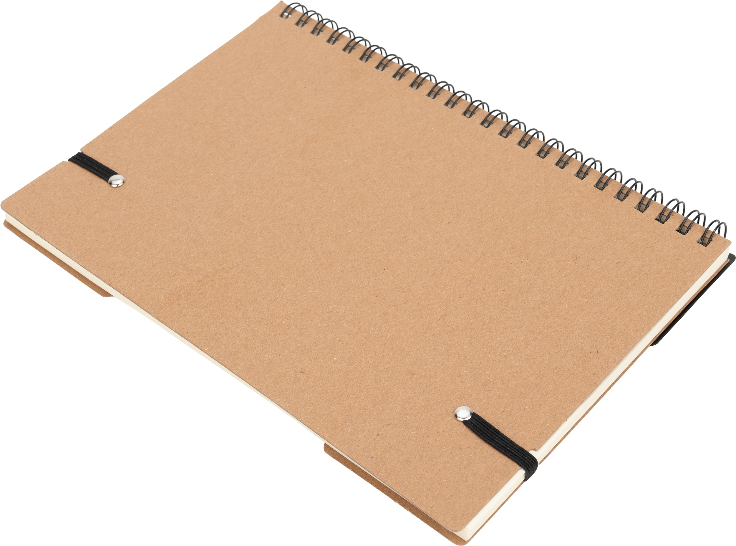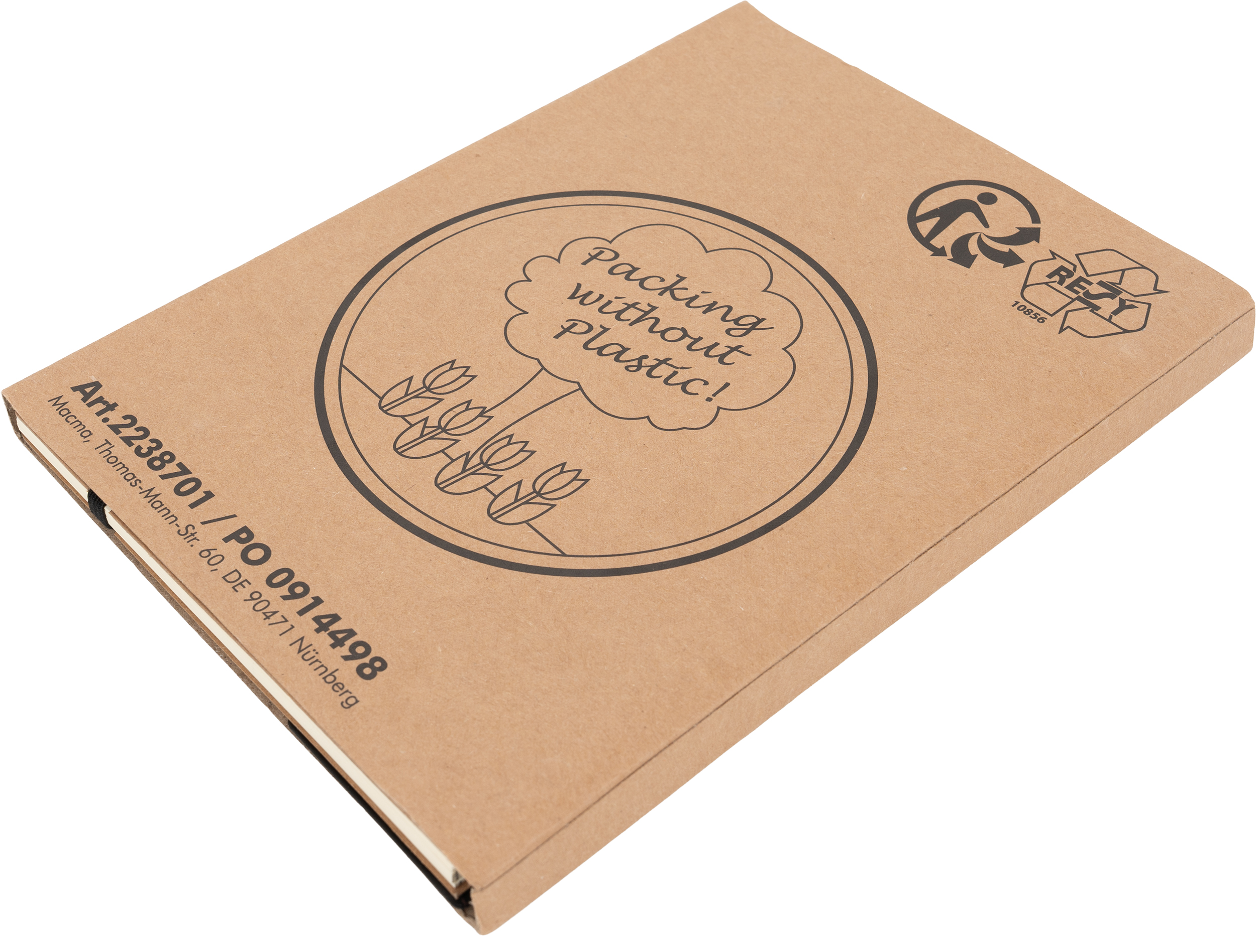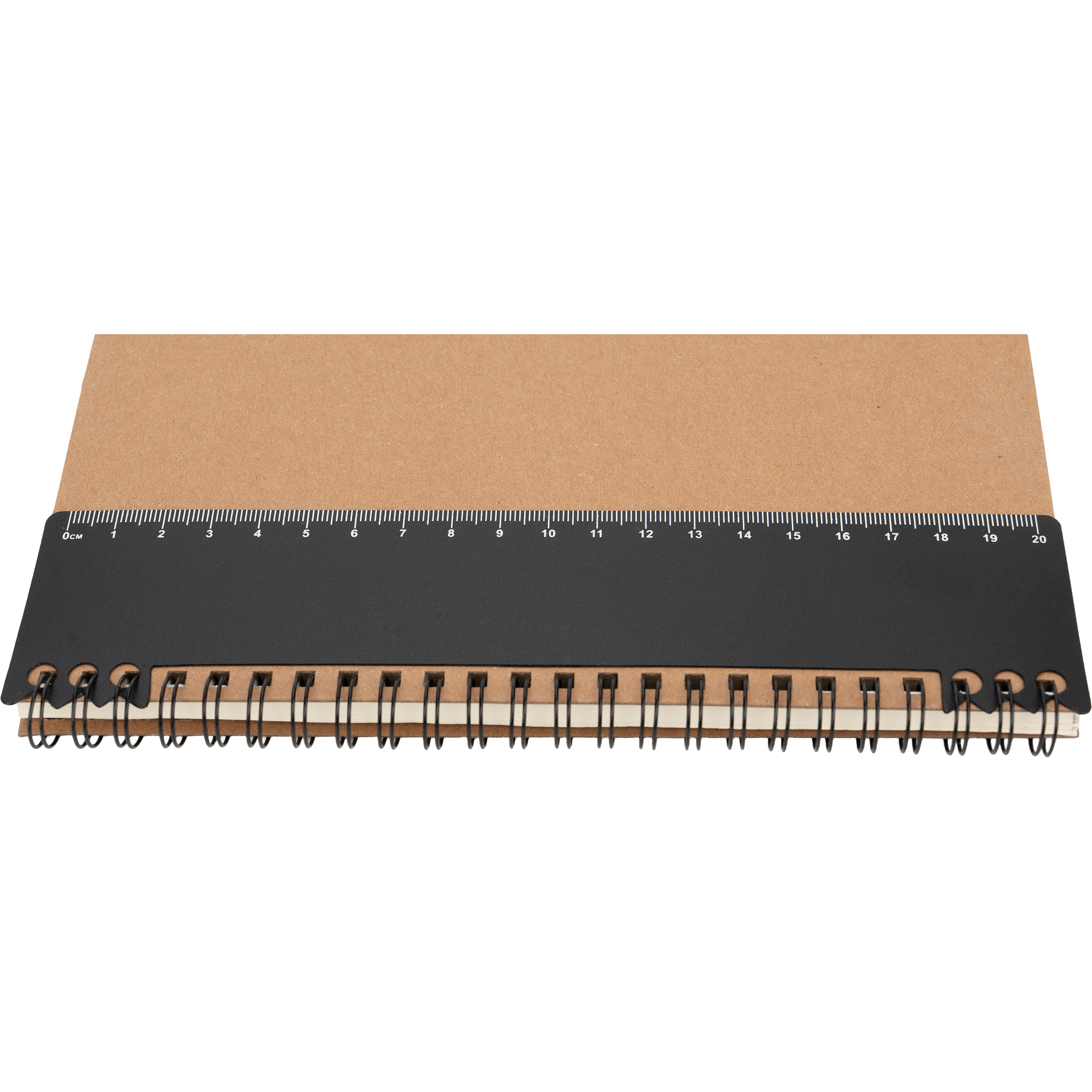 Notes A5 w kartonowej okładce z plastikową linijką, 120 stronami w kropki, karteczkami samoprzylepnymi i zamknięciem na gumkę.
