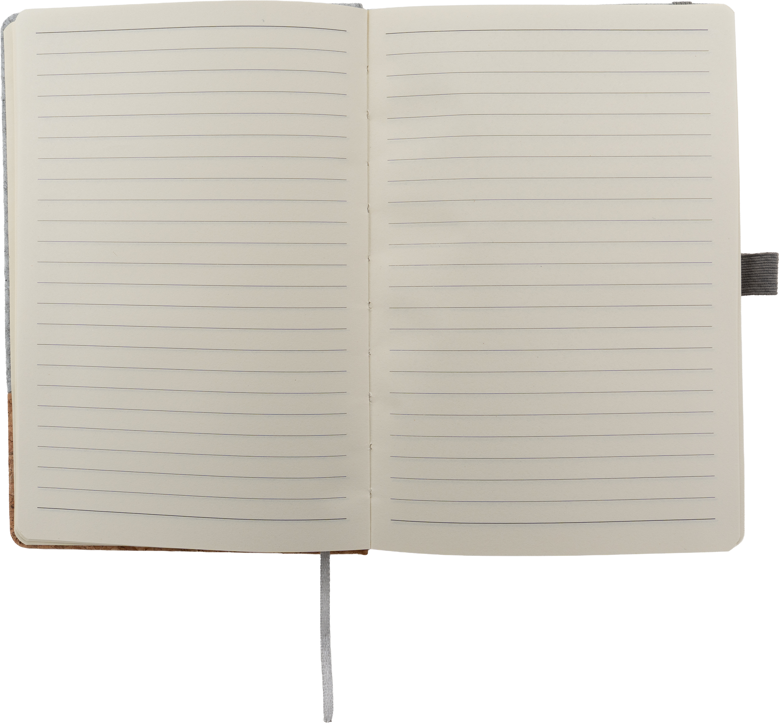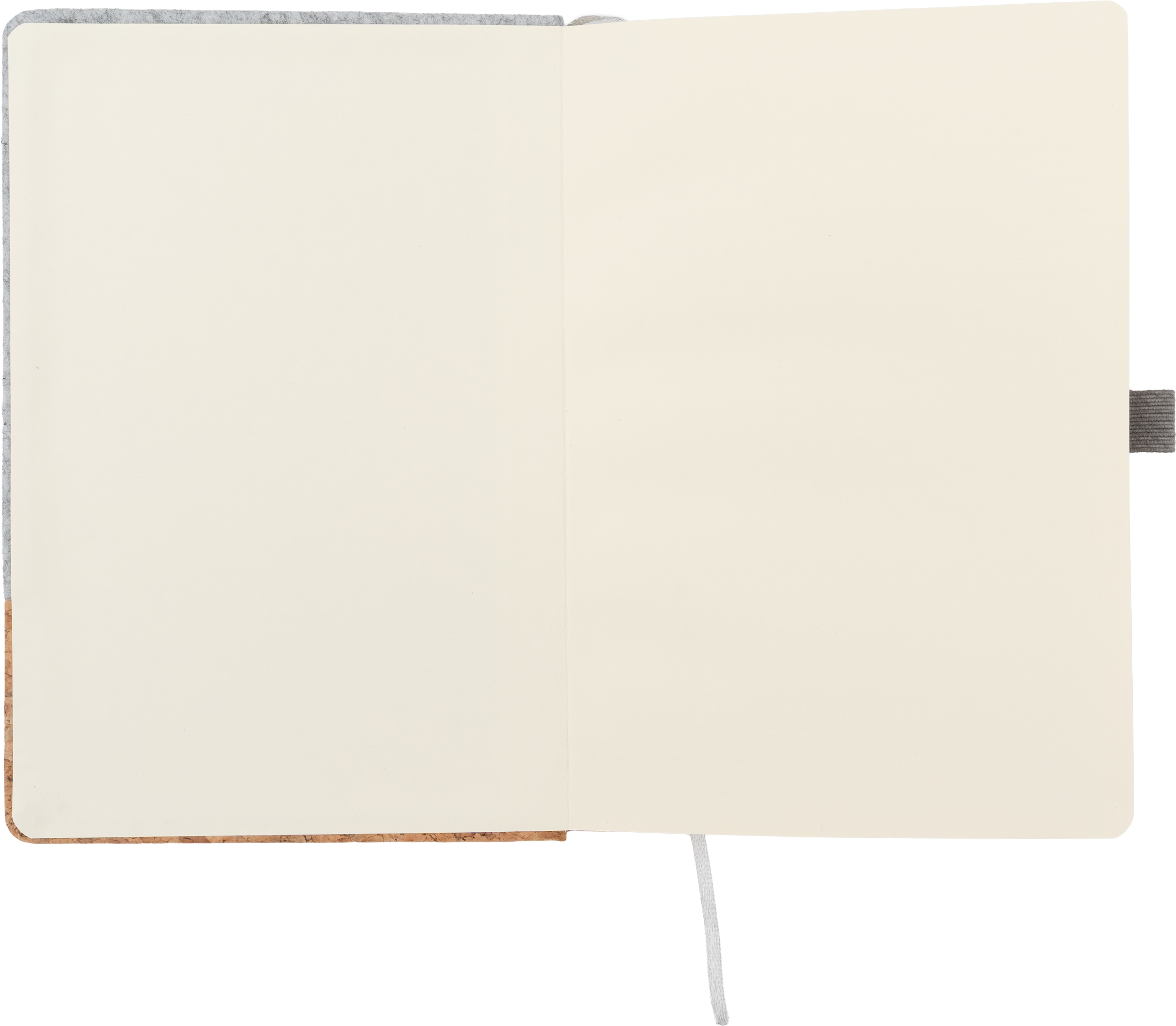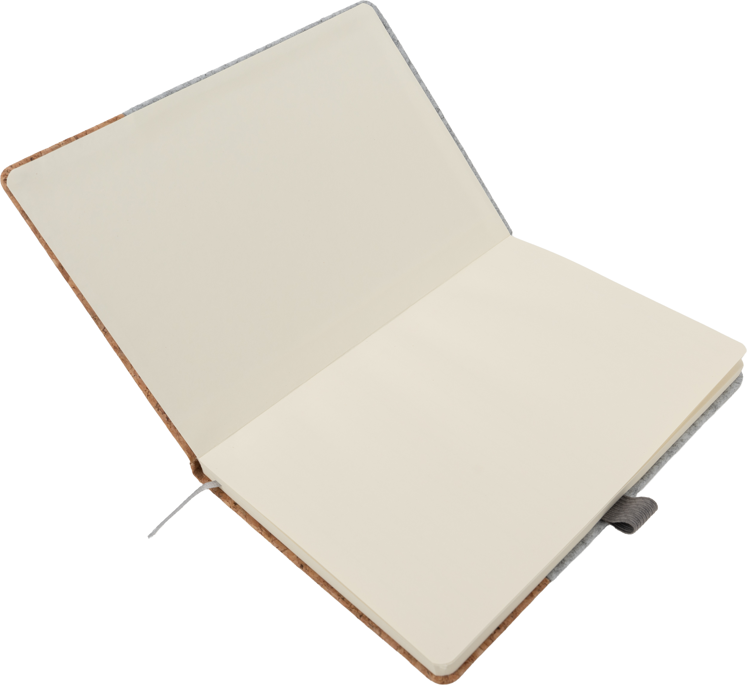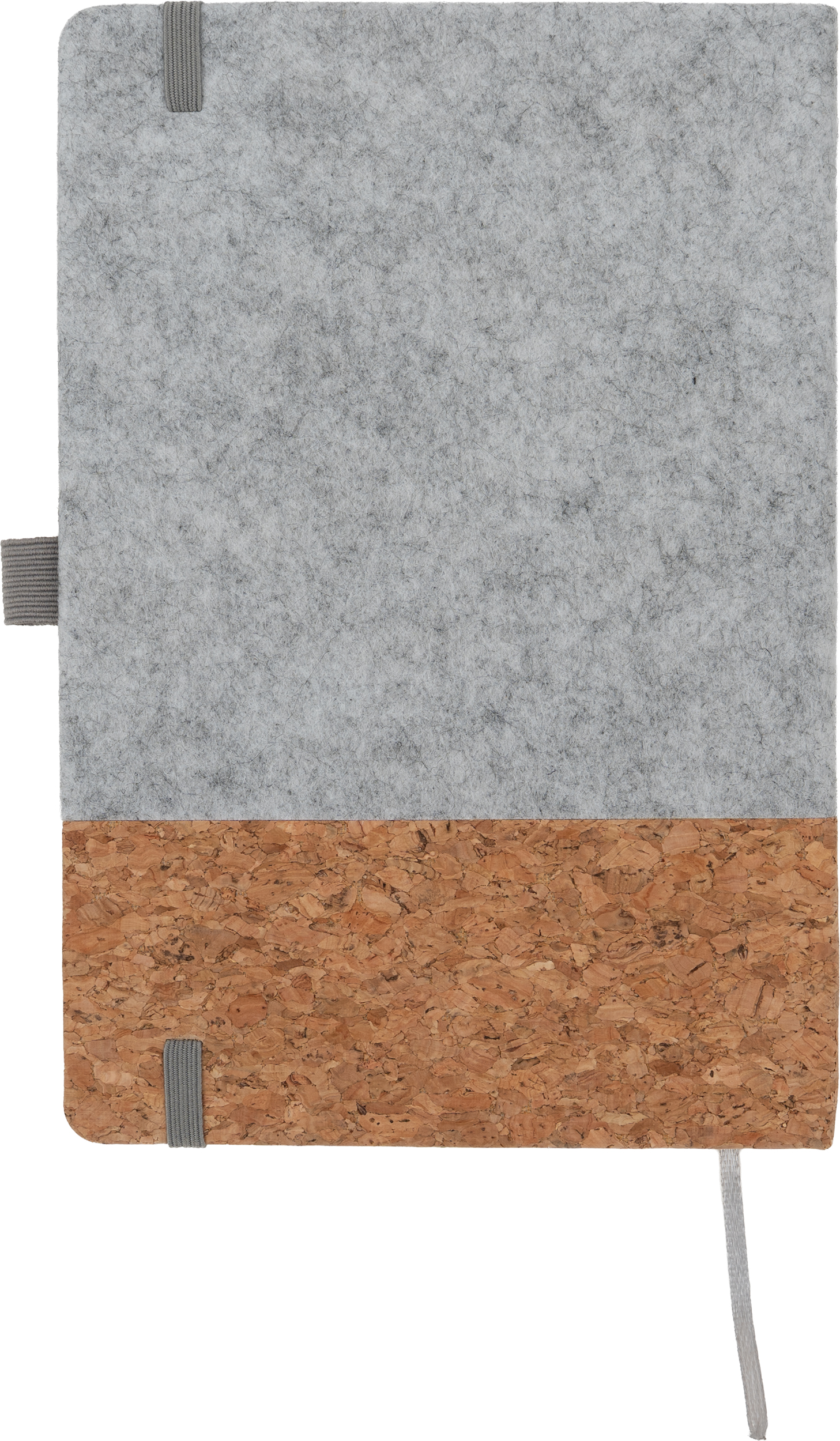 Notes A5 w oprawie z filcu i korka pochodzących z recyklingu, z gumką do zamykania i pętelką na długopis. Notes posiada 80 kartek w linie.