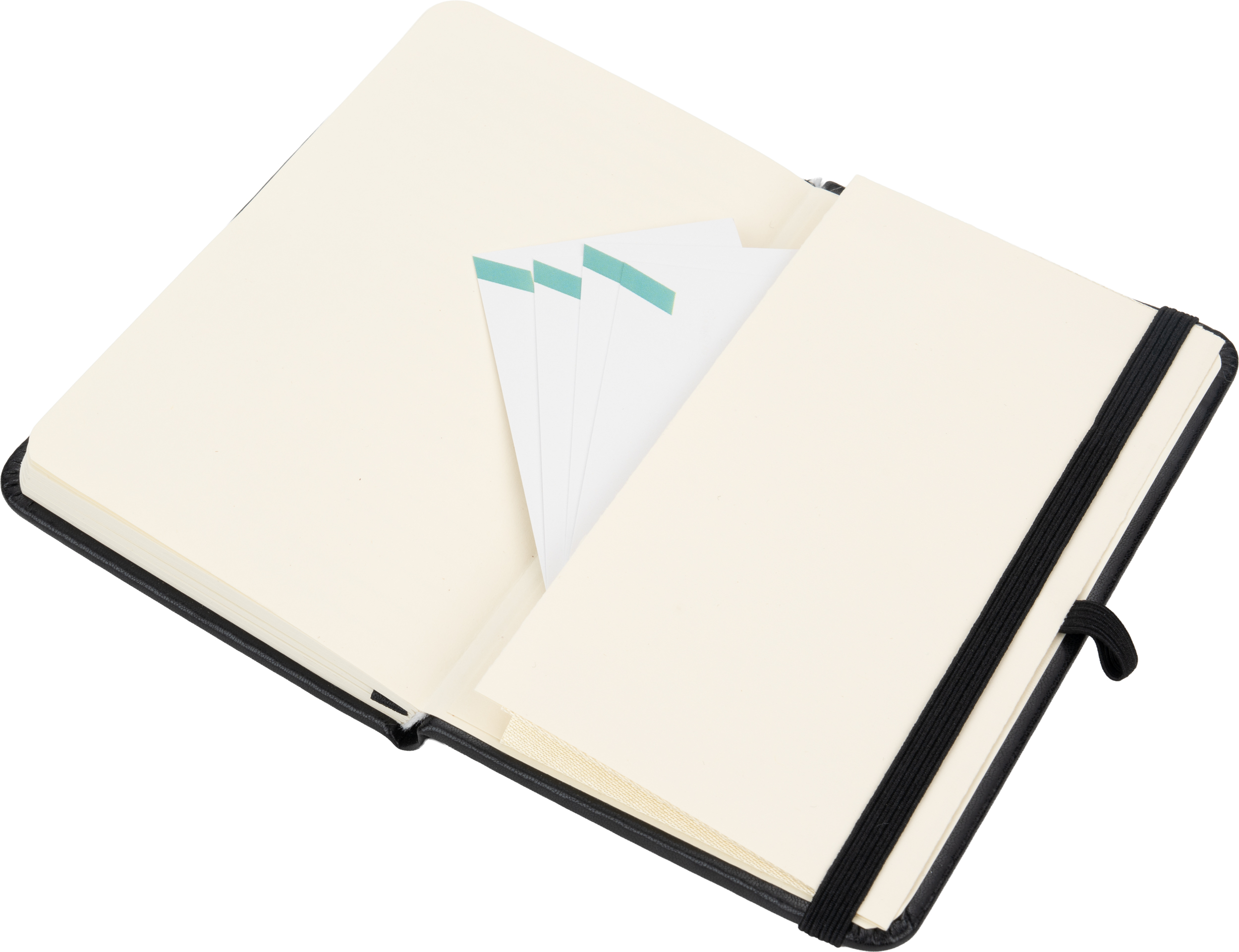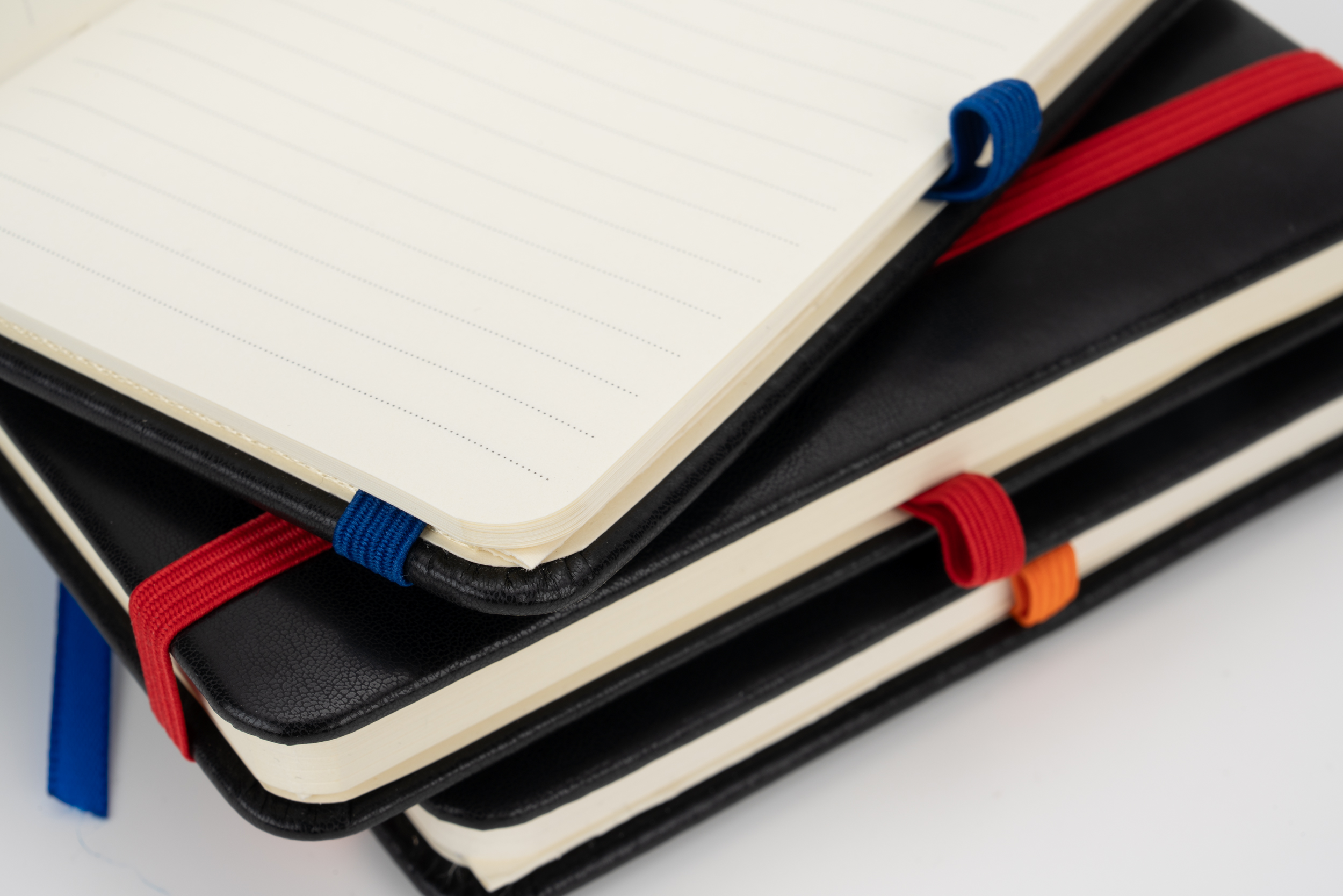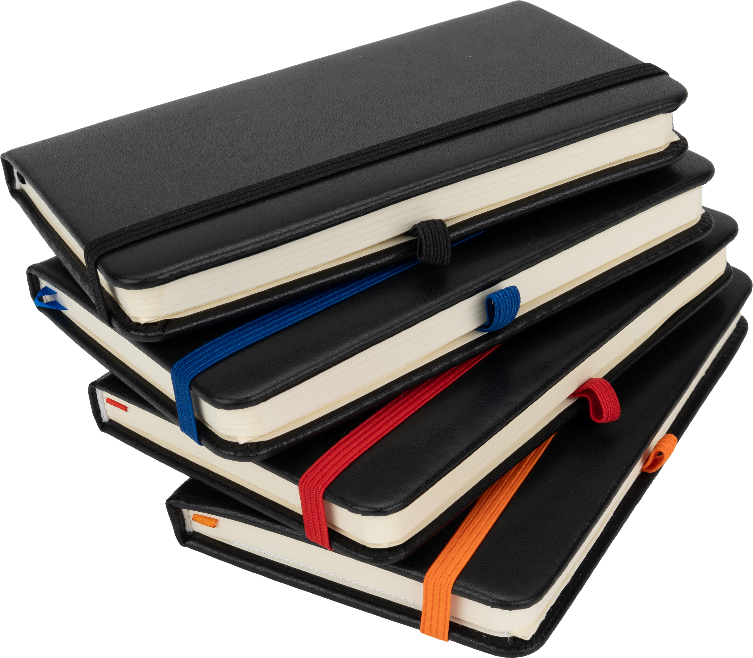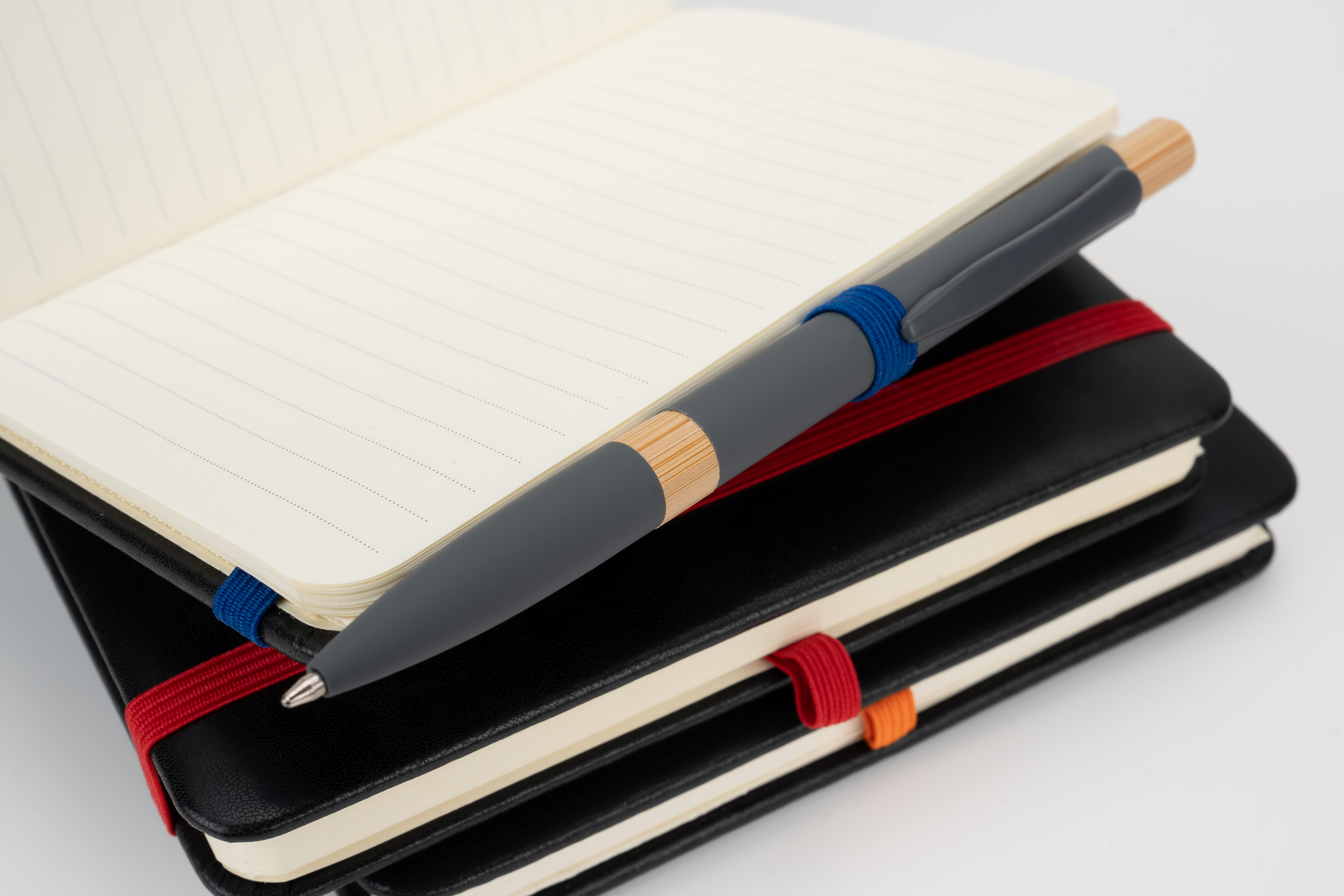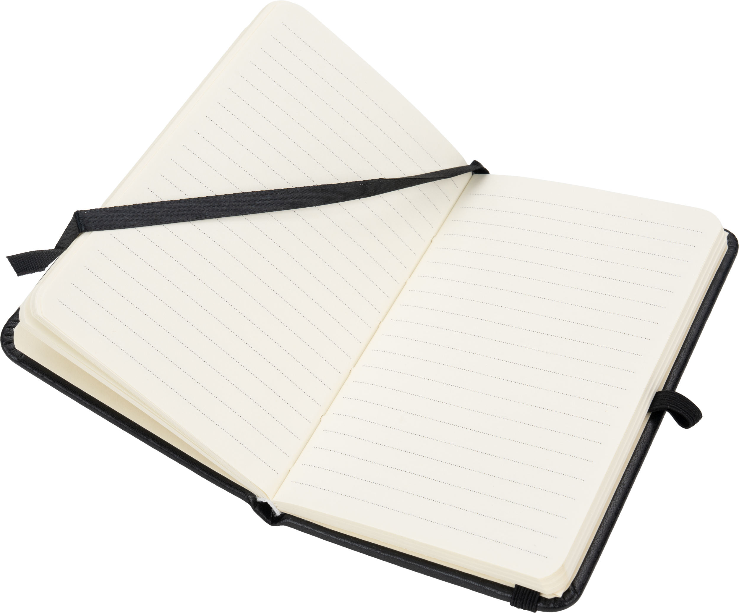 Notatnik A6 w okładce ze skóry syntetycznej, ze 160 stronami w linie, zakładką, pętelką na długopis i gumką do zamykania.