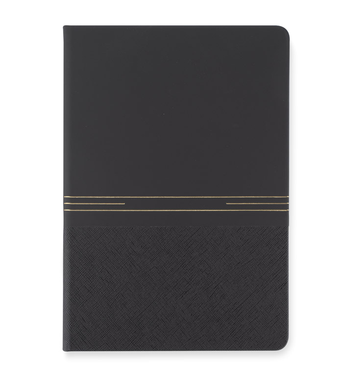Elegancki notes w twardej okładce z ozdobnym złoceniem. Kartki w notesie wyprodukowane zostały z papieru kamiennego. Taki papier jest wyjątkowo odporny na rozdarcia oraz na wilgoć. Posiada 80 kartek w kropki. Format A5.