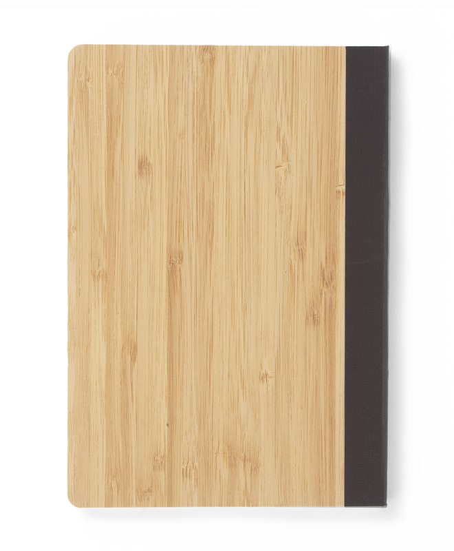Oryginalny i wyjątkowy notes formatu A5. Okładka wykonana z bambusa zakończona na brzegu brązową taśmą, która stanowi ciekawy i ozdobny element. Kartki w notesie wyprodukowane zostały z papieru kamiennego. Taki papier jest wyjątkowo odporny na rozdarcia oraz na wilgoć. Posiada 80 gładkich kartek. Zapakowany w woreczek biodegradowalny.