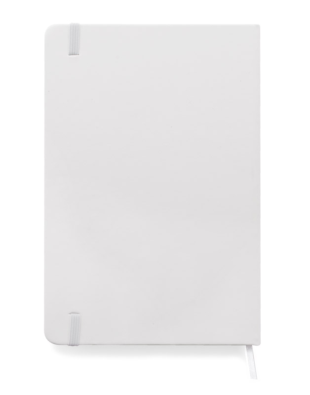 Gustowny notes A5 z kolorową gumką wykonany z materiału skóropodobnego (PU). Notes zawiera 80 kartek ecru w linie koloru pomarańczowego. Logo nadrukujemy na okładce.