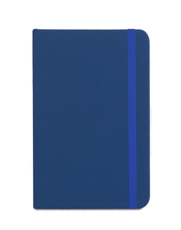 Gustowny notes A6 z kolorową gumką wykonany z materiału skóropodobnego (PU). Notes zawiera 80 kartek ecru w linie koloru pomarańczowego. Logo nadrukujemy na okładce.