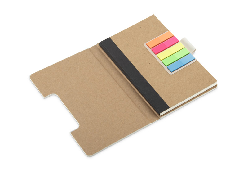 Notes STIKLO w formacie A6 to praktyczny gadżet biurowy, który łączy klasyczny notes z zestawem karteczek samoprzylepnych. Zawiera 80 białych kartek w kratkę, uchwyt na długopis oraz klejoną oprawę, która zapewnia wygodne użytkowanie. Dzięki dodatkowym zakładkom samoprzylepnym doskonale sprawdzi się do organizacji notatek, dokumentów czy planowania zadań. Kompaktowy i funkcjonalny – idealny do pracy biurowej, na spotkania czy jako element zestawu promocyjnego.