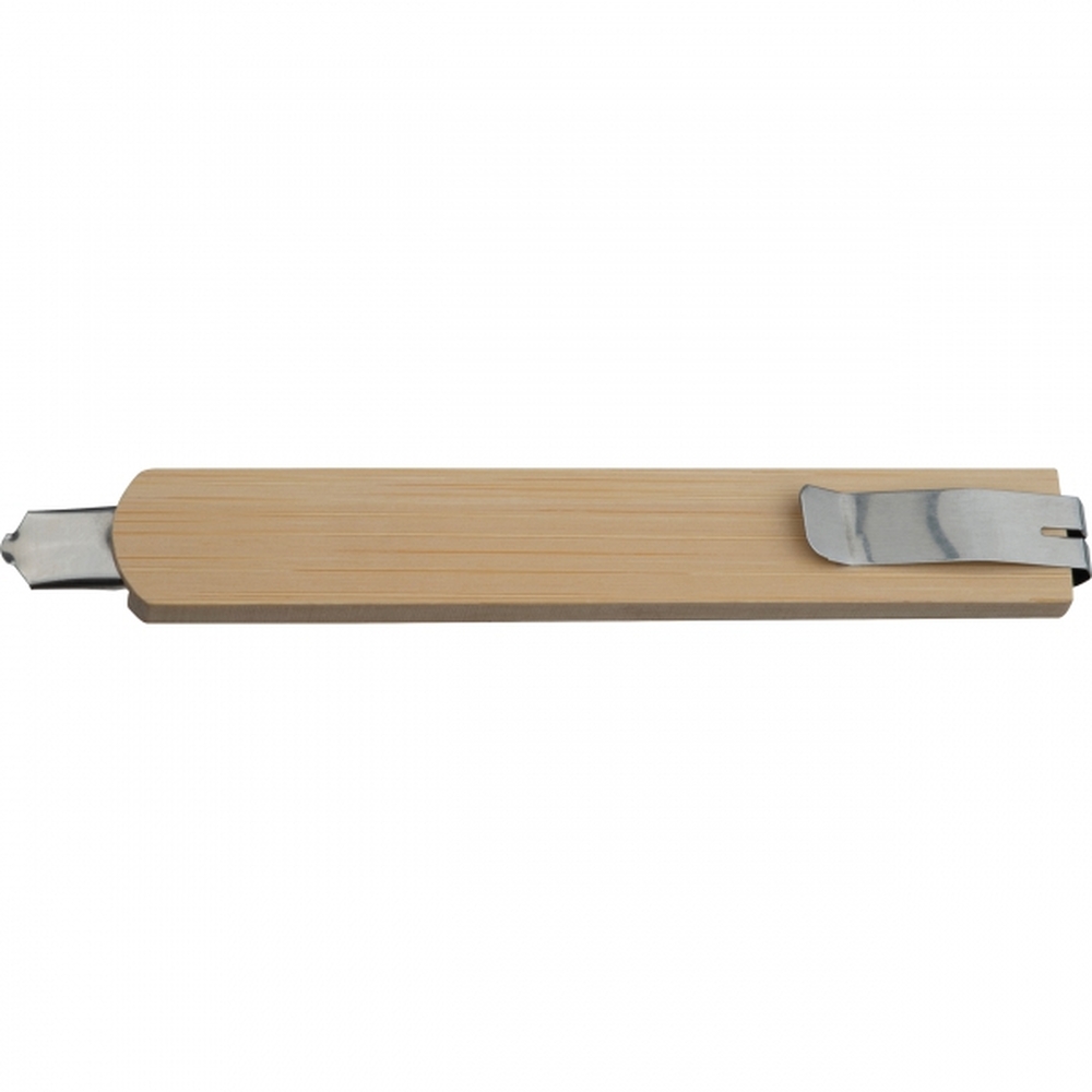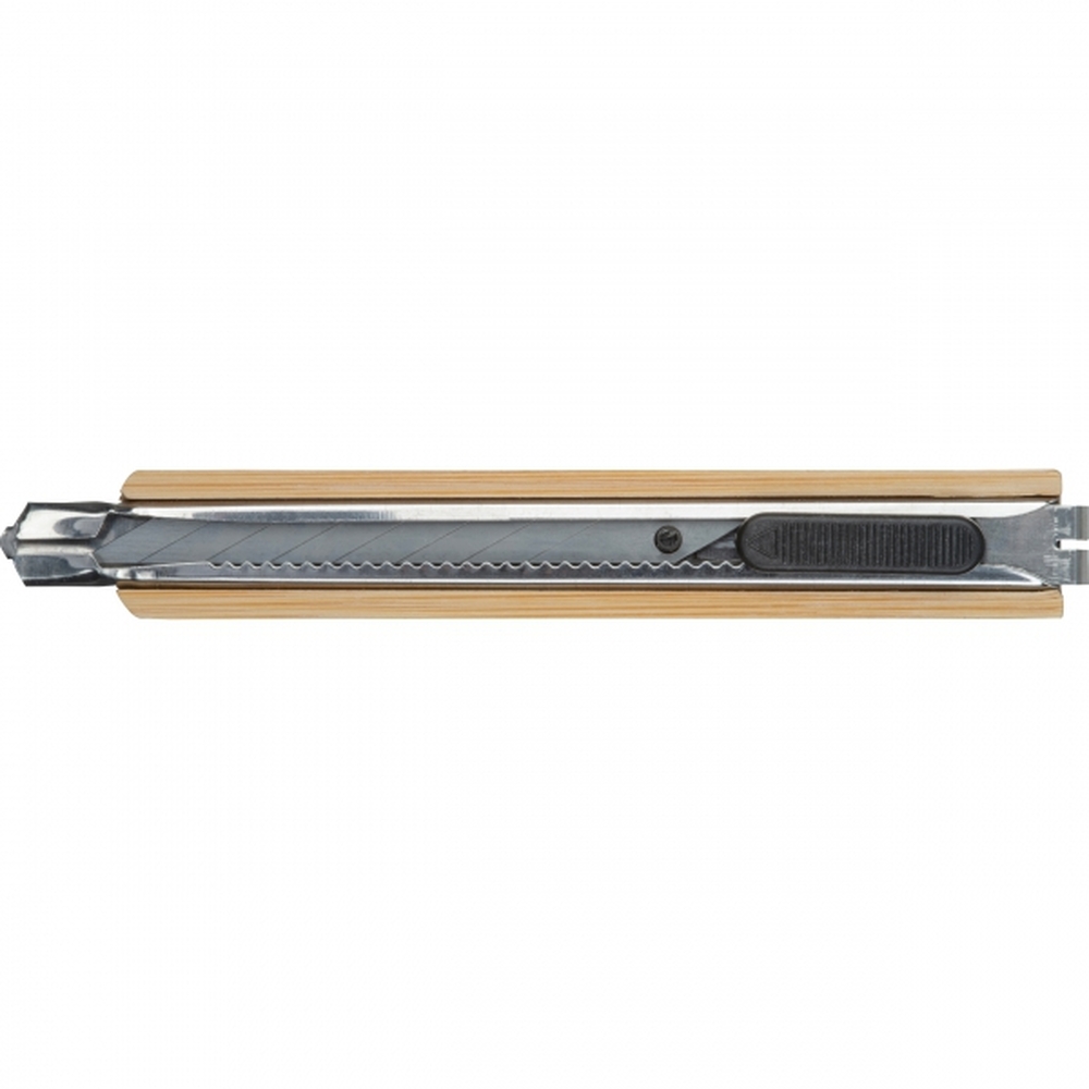 Nóż do kartonu z łamanym ostrzem, w bambusowej obudowie.