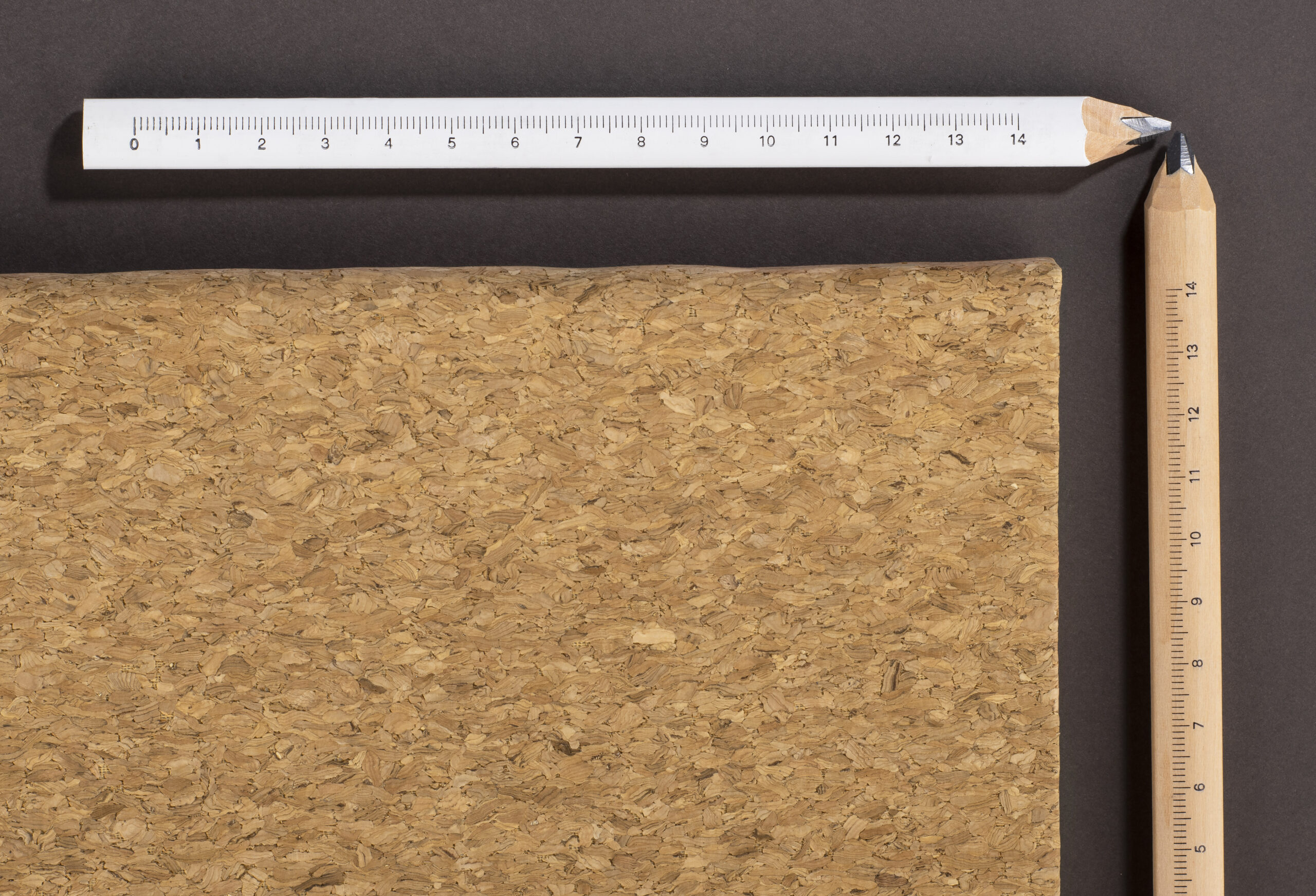 Klasyczny ołówek stolarski z linijką wykonany z drewna. Twardość rysika: F