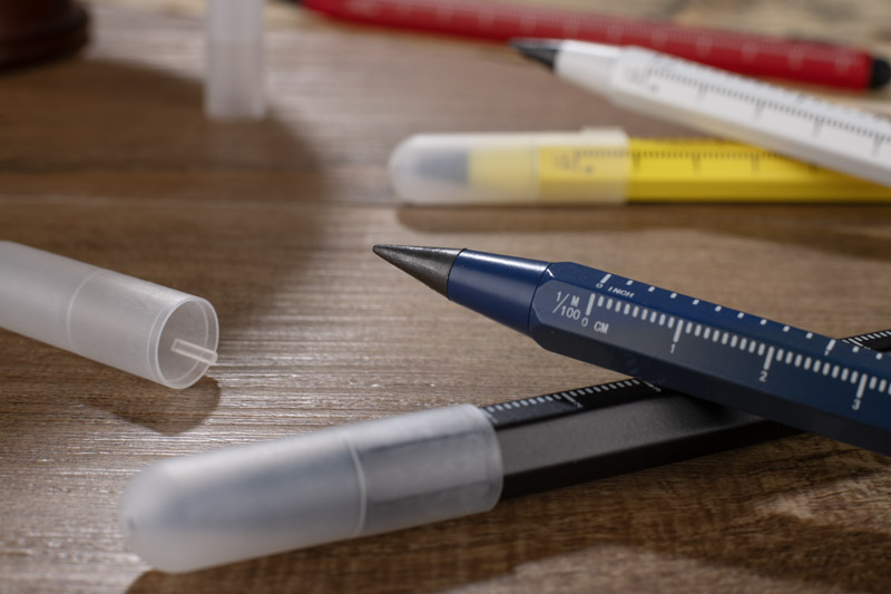 Ołówek wieczny DRAWI to praktyczny gadżet reklamowy wykonany z recyklingowanego aluminium z lakierowanym wykończeniem. Wyposażony w miarkę o długości 11 cm z podziałką w centymetrach i calach oraz touch pen, sprawdzi się w biurze, branży technicznej i budowlanej. Sześciokątny korpus zapewnia wygodny chwyt i zapobiega staczaniu się ołówka ze stołu. Zatyczka z tworzywa chroni końcówkę, co podnosi komfort użytkowania. Kompaktowy format sprawia, że DRAWI jest zawsze pod ręką i stanowi solidny nośnik reklamy dzięki możliwości znakowania.