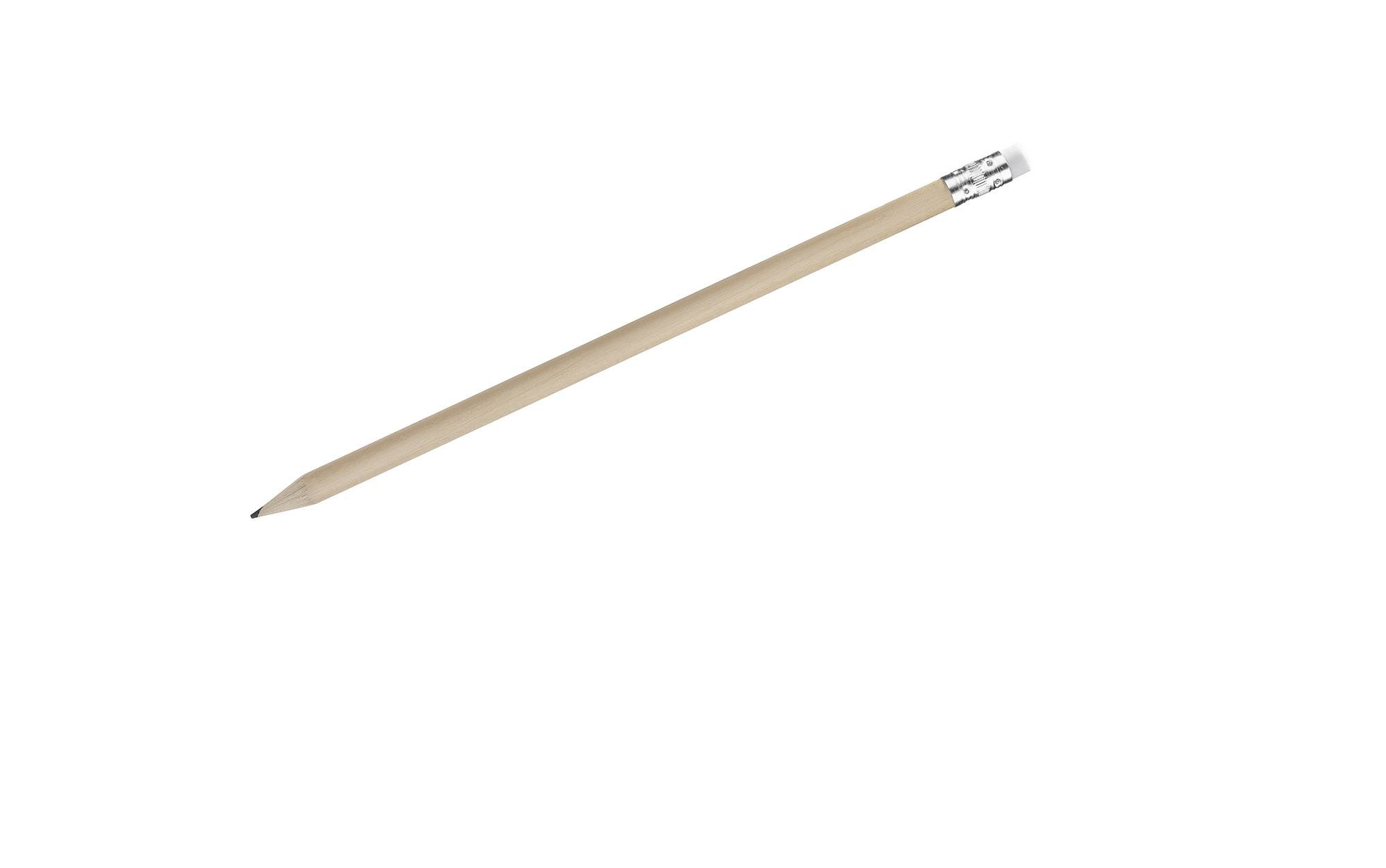 Klasyczny, drewniany ołówek z gumką. Twardość HB. Ołówek zatemperowany. Logo wygrawerujemy lub nadrukujemy na powierzchni ołówka.