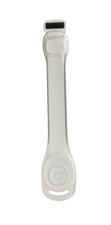 Opaska BLINK to praktyczny gadżet reklamowy wyposażony w latarkę LED, która oferuje dwa tryby świecenia: ciągłe i migające. Wykonana z elastycznej, szerokiej gumy z regulacją na rzep, zapewnia wygodne dopasowanie do różnych rozmiarów ramienia. Zawiera elementy o właściwościach odbijających światło oraz zaczep.