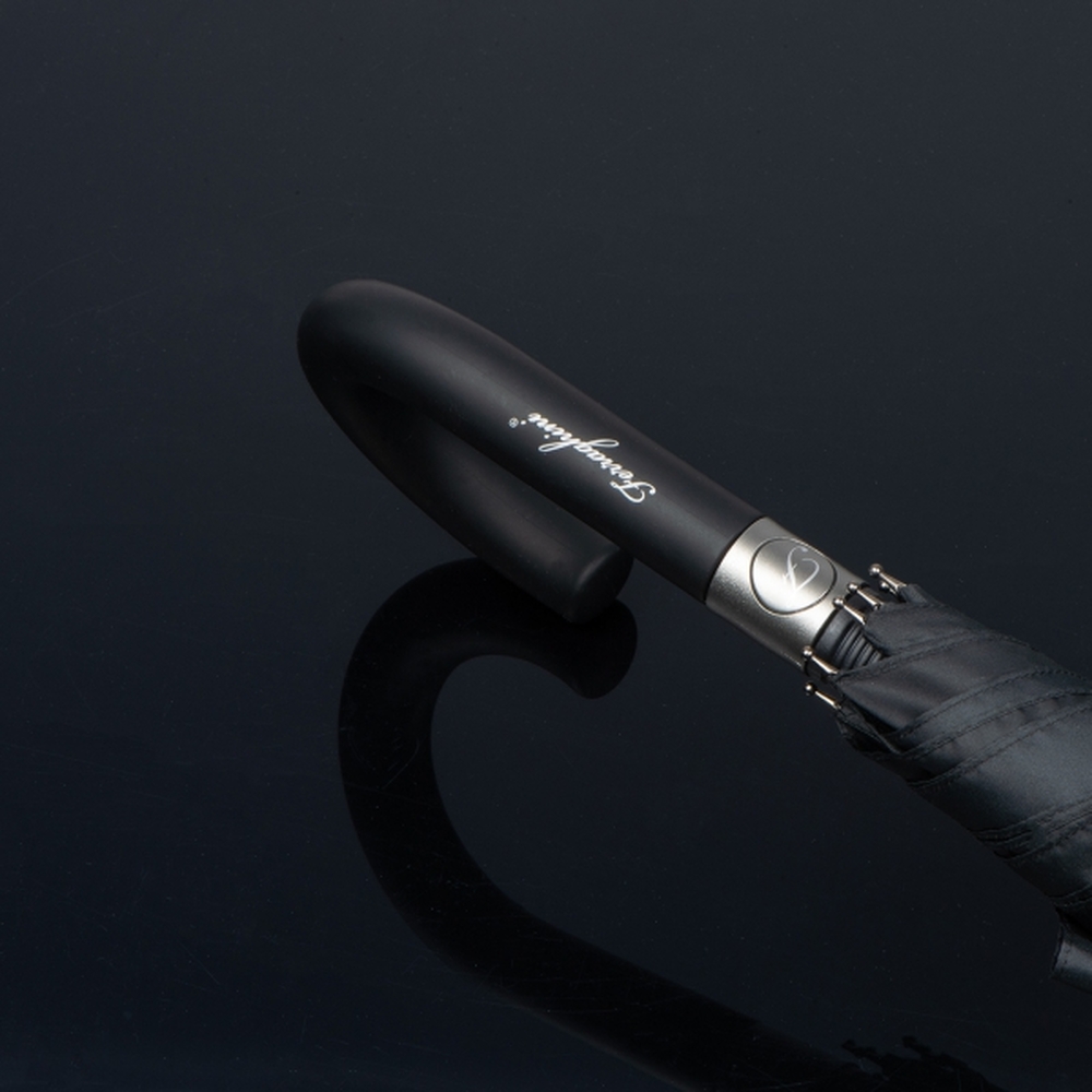 Stelaż z wytrzymałego włókna szklanego, odpornego na złamania, zapewnia wyjątkową trwałość i skutecznie radzi sobie z silnym wiatrem, a automatyczny mechanizm otwierania gwarantuje wygodę użytkowania. Jego elegancka konstrukcja i ekologiczne wykonanie sprawiają, że parasol Ferraghini sprawdzi się nie tylko jako ochrona przed deszczem i słońcem, ale również jako prezent dla klientów VIP, poszukujących solidnych i estetycznych klasyków reklamowych.Cechy ogólne:W zestawie z dedykowanym, czarnym pokrowcem.Rączka parasola i pokrowiec sygnowane markowym logo Ferraghini.Eleganckie, metalowe wykończenie przy rączce.