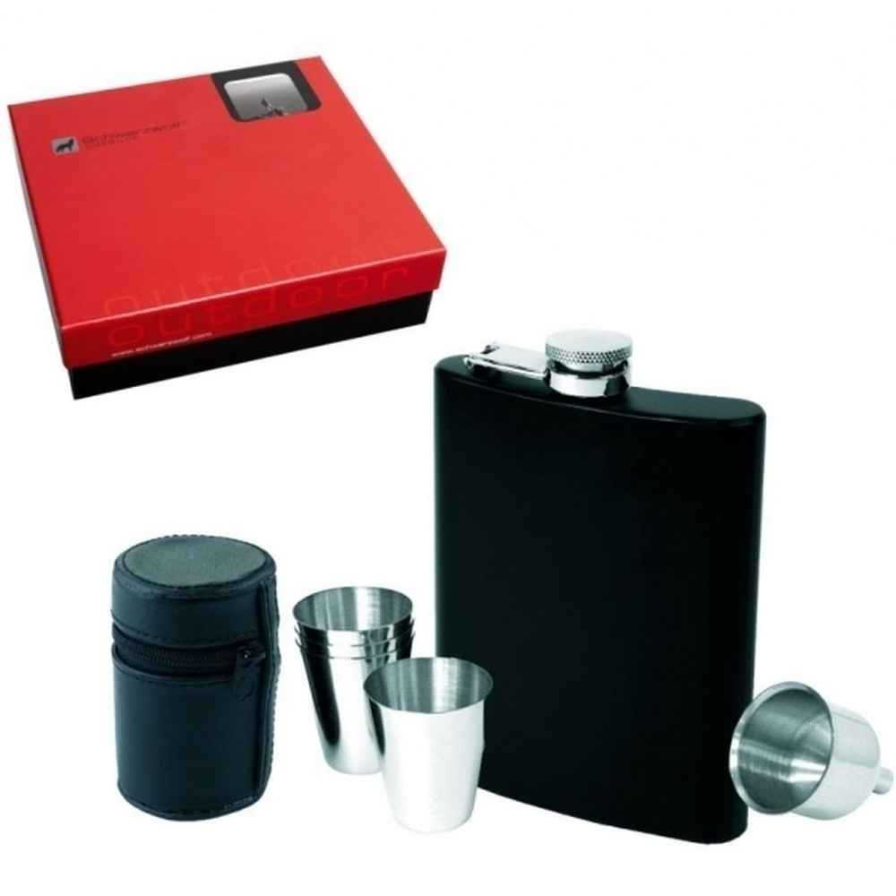 W zestawie znajdują się aż cztery niewielkie kieliszki, które umożliwiają wygodne serwowanie napoju w gronie znajomych.MADONIE to propozycja dla tych, którzy lubią mieć klasę nawet w terenie. Minimalistyczna forma, funkcjonalność i jakość marki Schwarzwolf w jednym stylowym zestawie.