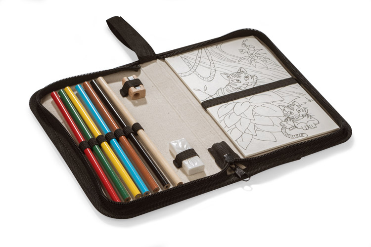 Piórnik PASTELLI to gadżet, który sprawi radość dzieciom. Na okładce została umieszczona grafika zaprojektowana specjalnie dla BLUE COLLECTION z możliwością pokolorowania, co zapewni najmłodszym dużo zabawy. Piórnik został wyposażony w sześć niezatemperowanych kredek, ołówek, gumkę do mazania, temperówkę, a także w notesik z kolorowankami i czystymi kartkami.
