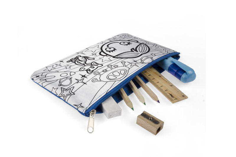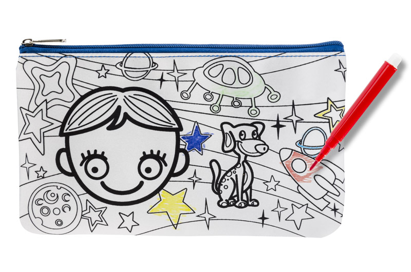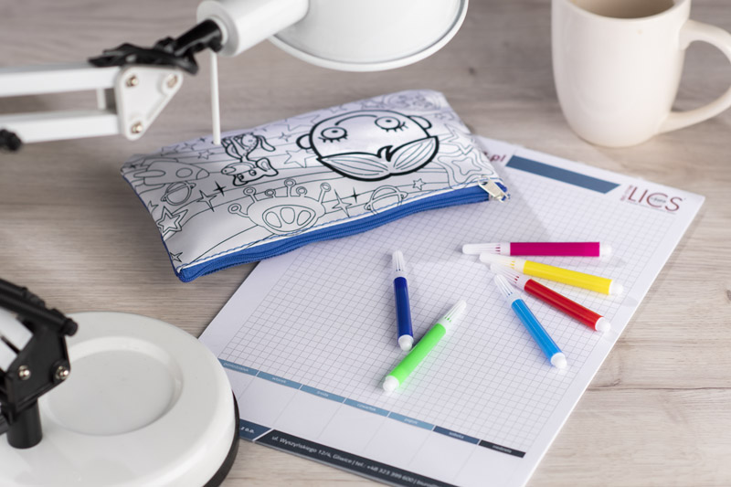 Piórnik ozdobiony grafiką do samodzielnego pokolorowania. Upominek, któyy potrafi zaangażować i bawić. W zestawie dołączone pisaki w 6 kolorach. Piórnik jednokomorowy zapinany na zamek.