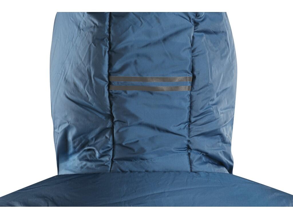 Damski płaszcz ocieplany z kapturem, dwustronnym zamkiem i bocznym rozcięciem na zatrzaski. Boczne kieszenie na zamek, rękawy zakończone elastycznym mankietem, czarne odblaskowe dodatki na kapturze, bocznym rozcięciu i wzdłuż głównego zamka, kieszeń wewnętrzna na zamek.