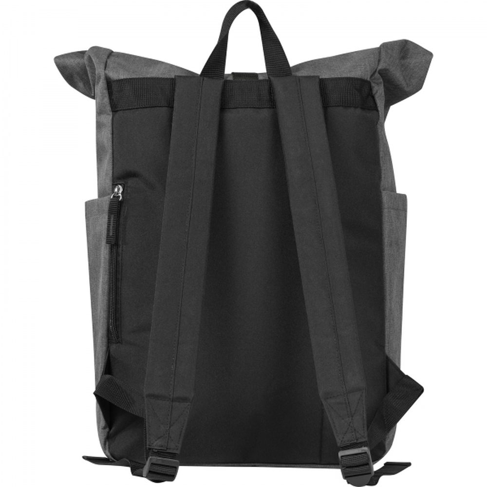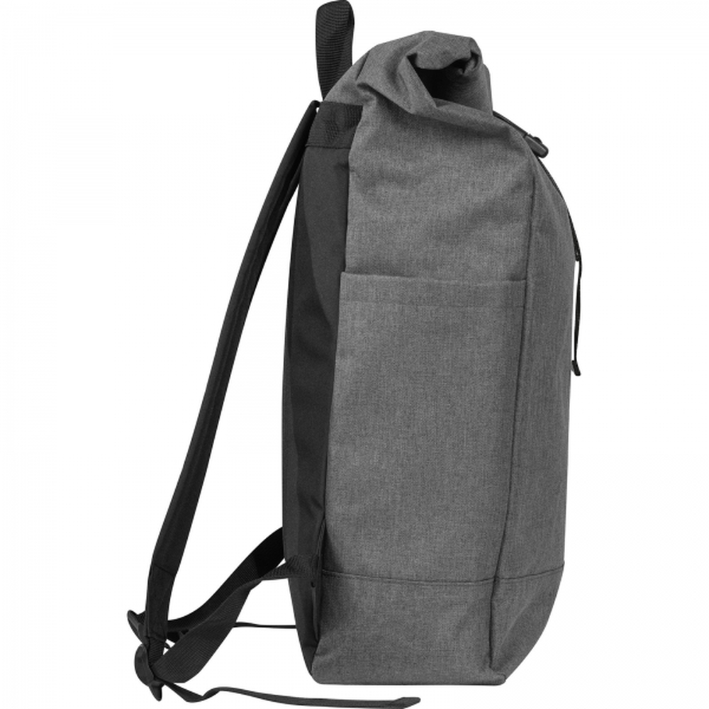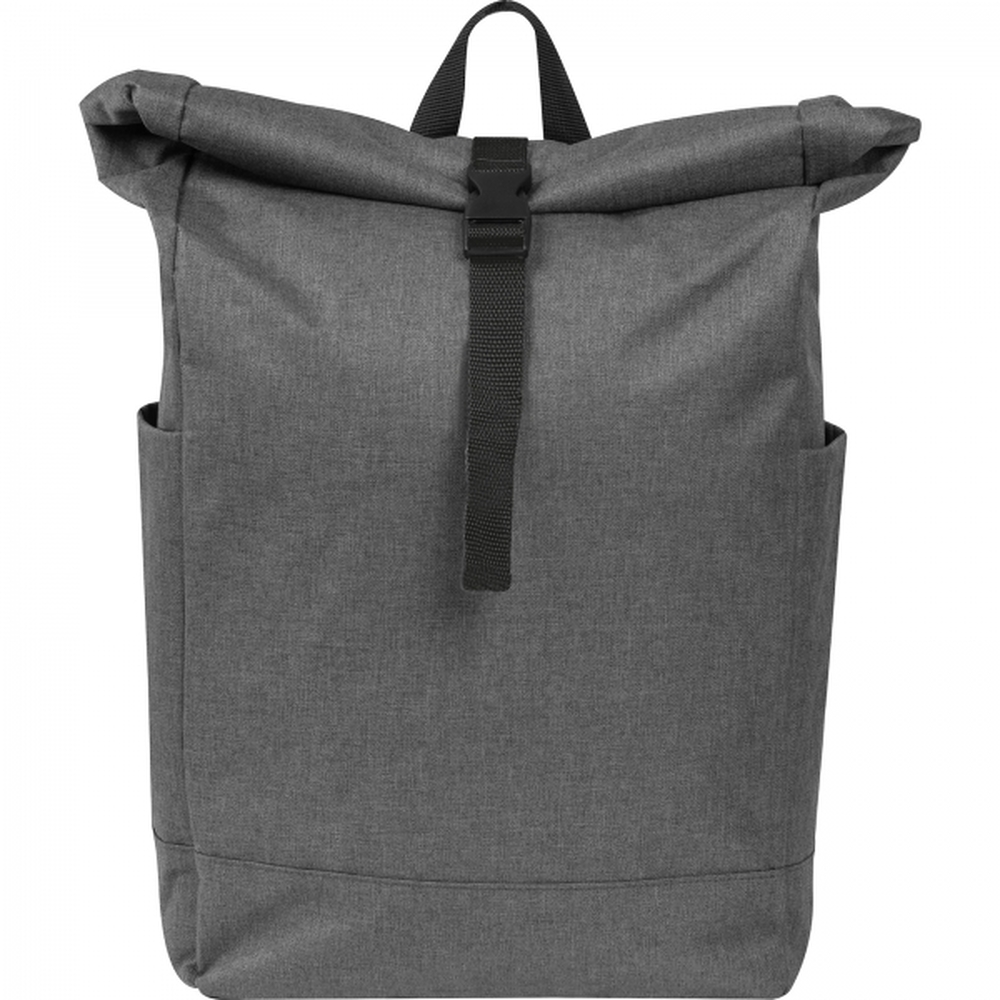 Plecak wykonany z poliestru z watowanymi szelkami. Plecak można zamknąć przez zrolowanie lub złożenie.