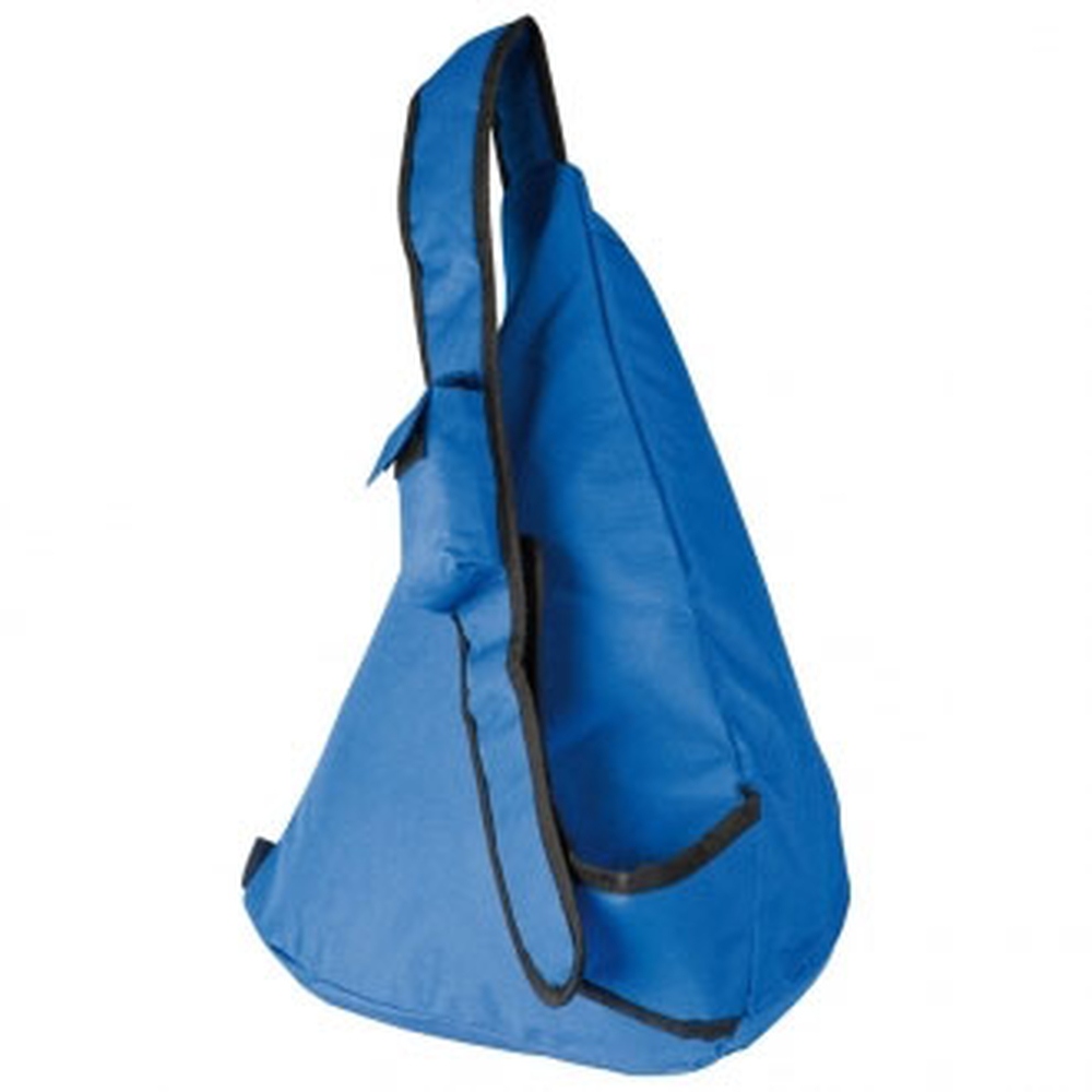 Plecak na jedno ramię z dużą komorą główną, małą przednią kieszonką zapinaną na zamek oraz kieszenią na telefon komórkowy umieszczoną na szerokim pasku na ramię. Wykonany z poliestru.