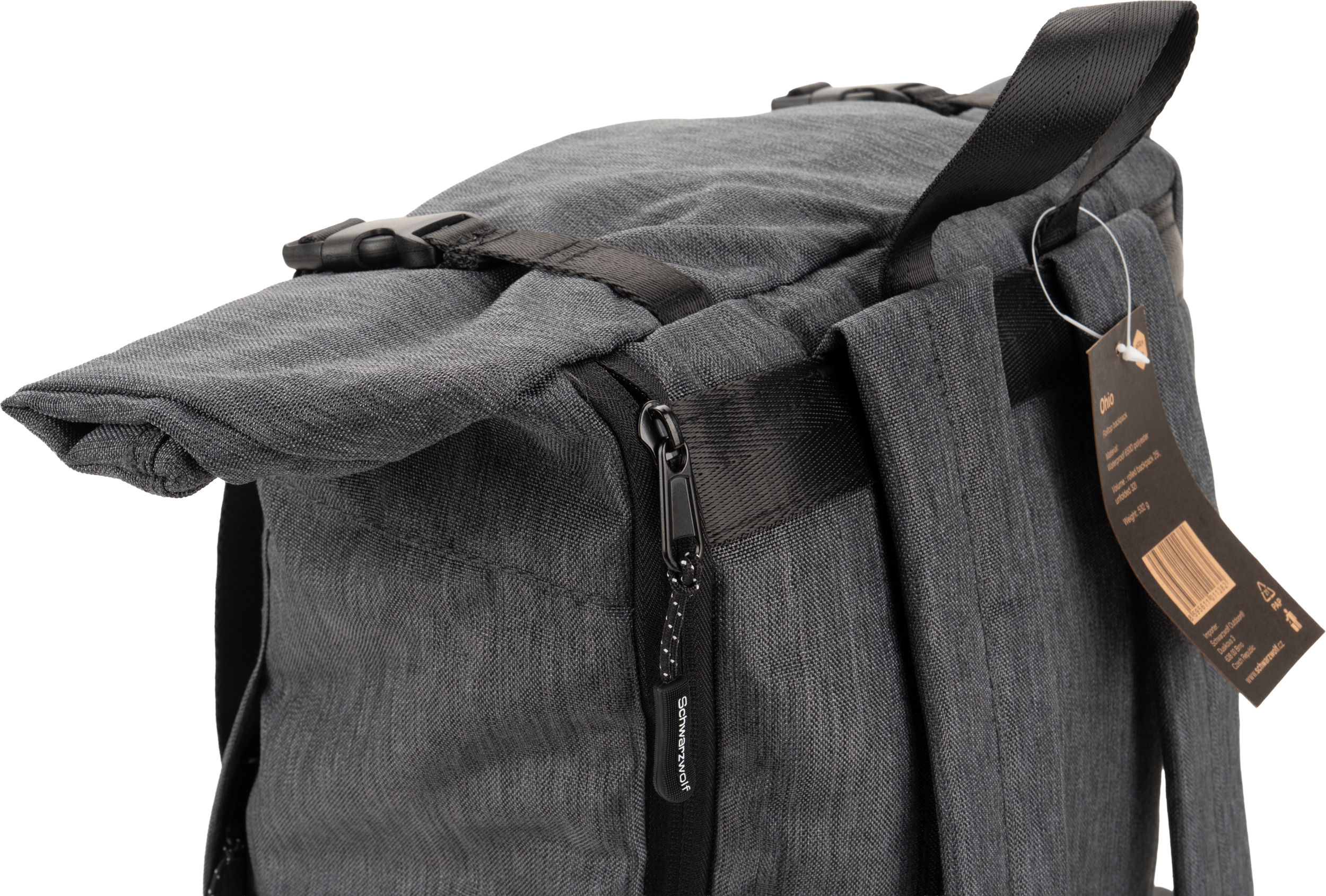 Plecak OHIO Schwarzwolf to stylowy i funkcjonalny wybór dla osób, które cenią porządek i wygodę. Zwijane zamknięcie umożliwia łatwy dostęp do wnętrza plecaka, a dodatkowe dwie frontowe kieszenie zapinane na zamek oraz boczne kieszonki zapewniają dodatkowe miejsce na drobne przedmioty. Tylny zamek umożliwia szybki dostęp do dużej komory głównej, która została podzielona na jedną dużą kieszeń oraz mniejszą na akcesoria.Po zrolowaniu górnej części plecaka, zamknięcie jest zabezpieczone dwoma paskami z plastikowymi klamerkami, co gwarantuje, że zawartość plecaka pozostaje bezpieczna.