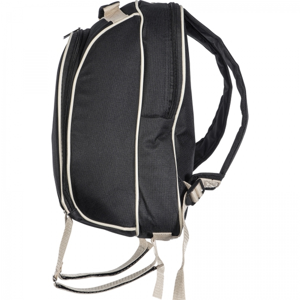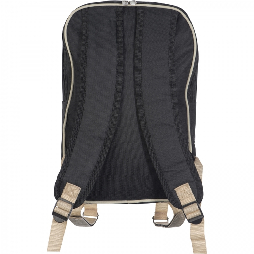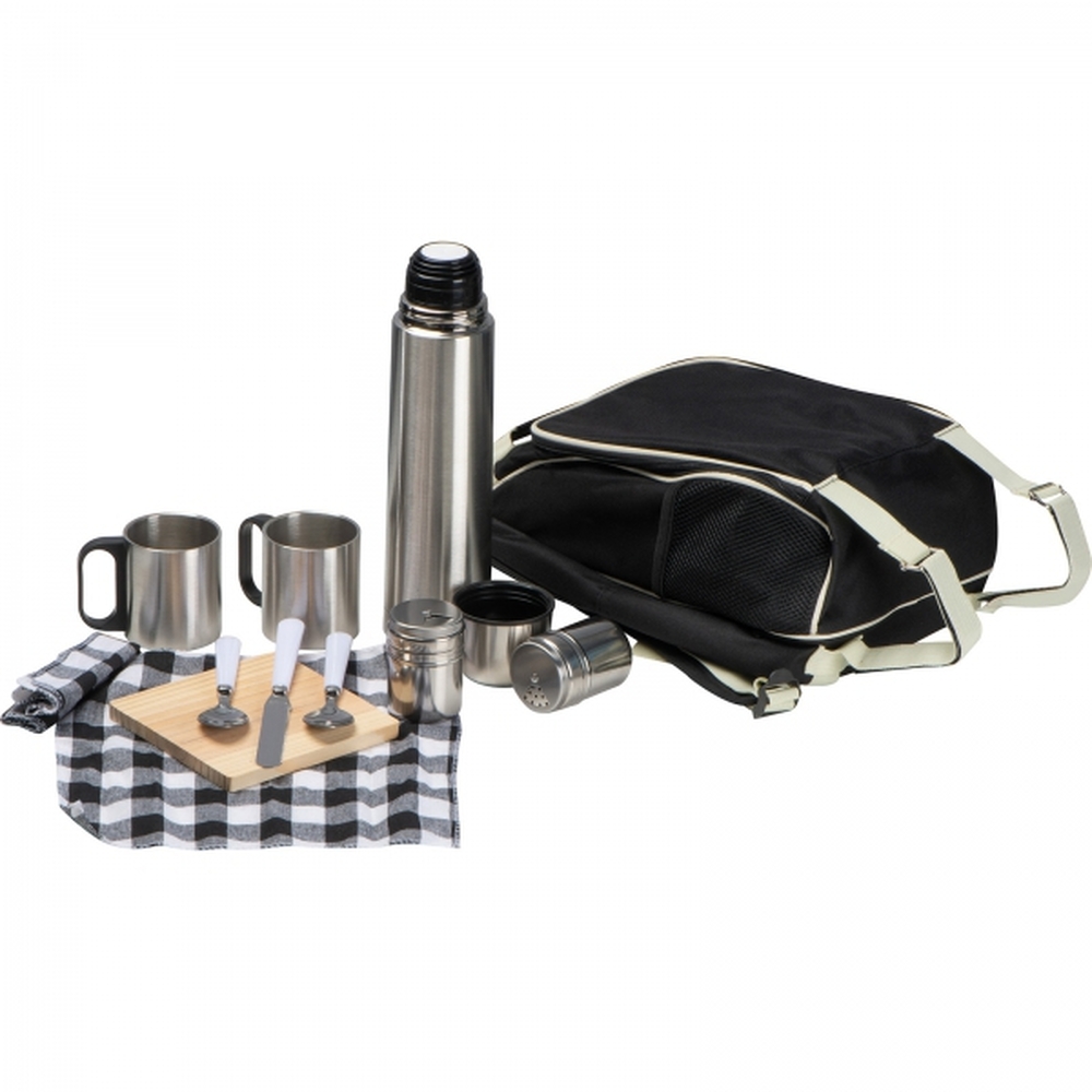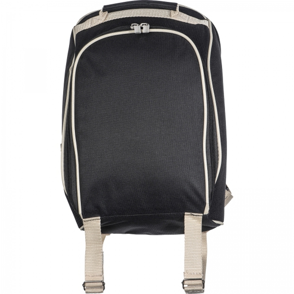Plecak piknikowy to doskonałe rozwiązanie dla miłośników spędzania czasu na świeżym powietrzu. Wykonany z wytrzymałego poliestru, łączy funkcjonalność i wygodę, oferując przestronną komorę chłodzącą, która pomaga utrzymać świeżość przenoszonych produktów.Wyposażony w kompletny zestaw akcesoriów dla dwóch osób, plecak zawiera termos ze stali nierdzewnej, dwa stalowe kubki, pojemniki na sól i pieprz, praktyczną deskę do krojenia, pełny zestaw sztućców oraz serwetkę.
