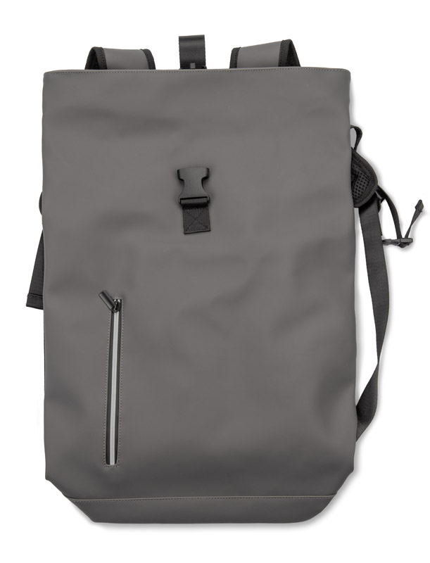 RULO to plecak wykonany z najwyższej jakości wodoodpornego materiału, który skutecznie chroni zawartość przed deszczem i wilgocią. Główna komora plecaka zamykana jest na zamek, z możliwością zrolowania i dodatkowego zabezpieczenia plastikowym zatrzaskiem. Wnętrze wyściełane miękką bawełnianą podszewką skrywa dwie praktyczne kieszonki na drobiazgi, które ułatwią organizację. Dzięki specjalnej siatce mesh na plecach, RULO zapewnia doskonałą wentylację i komfort noszenia, nawet podczas długich spacerów. Tkanina dystansowa, która nie chłonie wody i szybko schnie, sprawia, że plecak jest idealny na każdą pogodę. Od strony pleców znajduje się ukryta kieszeń na laptopa, zapinana na zamek, zapewniając jednocześnie łatwy dostęp i dodatkowe bezpieczeństwo. Kieszeń jest przystosowana do laptopów o przekątnej ekranu do 15,6 cali, co czyni plecak praktycznym rozwiązaniem dla użytkowników laptopów o standardowym rozmiarze. Po zewnętrznej stronie plecaka znajduje się mała kieszeń na drobiazgi, zapinana na zamek i obszyta tkaniną odblaskową, co zwiększa widoczność i bezpieczeństwo użytkownika.