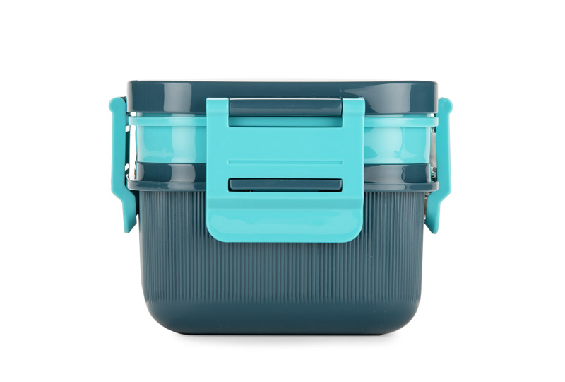Pojemnik BILO to praktyczny lunchbox z przemyślaną konstrukcją, umożliwiającą wygodne przechowywanie posiłków. Główny pojemnik jest podzielony na dwie komory, a dodatkowa wkładka zawiera miejsce na sztućce, mały pojemnik na sos oraz dwie mniejsze przegródki. Dzięki temu różne składniki nie mieszają się ze sobą. Główny pojemnik jest podzielony na dwie komory, a dodatkowa wkładka zawiera miejsce na sztućce, mały pojemnik na sos oraz dwie mniejsze przegródki. Pokrywka posiada uszczelkę i cztery klipsy blokujące, które zapewniają szczelność i bezpieczne przechowywanie jedzenia.Wykonany z wytrzymałego tworzywa, sprawdzi się w codziennym użytkowaniu. Możliwość znakowania czyni go funkcjonalnym gadżetem reklamowym.