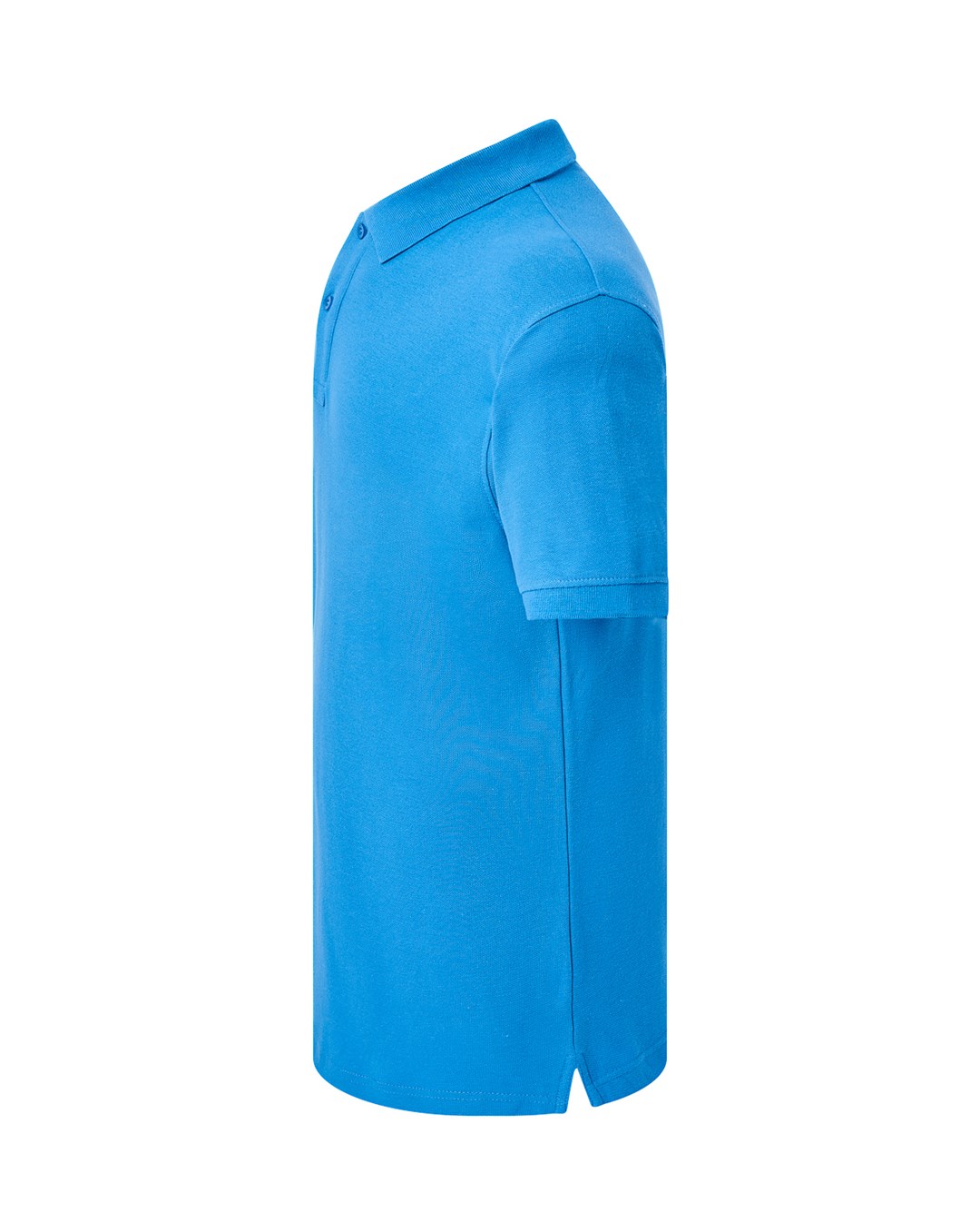 Polo męskie z krótkim rękawem. Zapinane na dwa guziki. Kołnierzyk i rękawy wykończone dzianiną 1×1. Boczne rozcięcia. 100% stabilizowana bawełna czesankowa pique.
