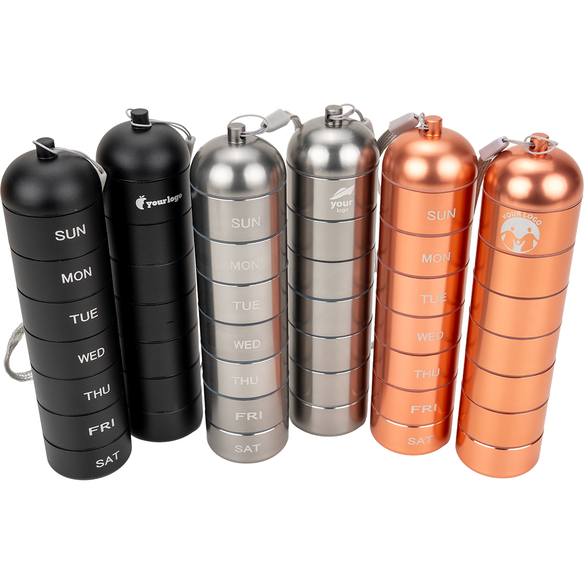 Funkcjonalny i wytrzymały organizer do leków (pillbox), przeznaczony do planowania i przechowywania dawek leków, suplementów diety lub witamin. Dostępny w różnych wariantach kolorystycznych, wielkościach oraz konfiguracjach przegródek – w zależności od potrzeb użytkownika. Produkt wykonany z wysokiej jakości tworzywa łatwego w czyszczeniu. Idealny do użytku domowego lub w podróży, szczególnie przy stałym leczeniu wymagającym regularnego dawkowania leków.