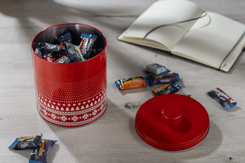 Puszka KLAUS z autorskim świątecznym nadrukiem BLUE COLLECTION może służyć do przechowywania ciastek lub cukierków. Puszka stanowi doskonały element dekoracyjny, zwłaszcza w czasie świąt. Posiada zamykane wieczko. Bezpieczna w kontakcie z żywnością.