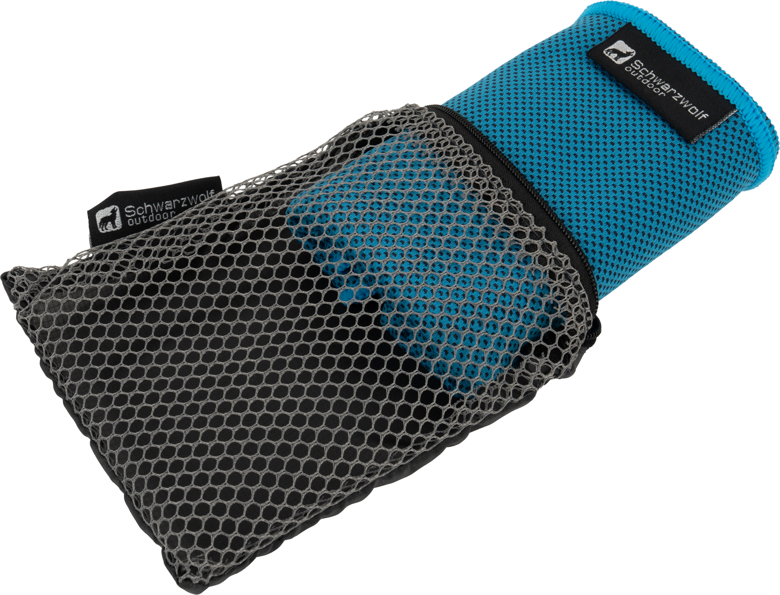 Ręcznik sportowy Schwarzowolf wykonany z szybkoschnącego materiału: poliester 55%, poliamid 45%. Pakowany w etui z siateczki – 14 x 10 x 1 cm.