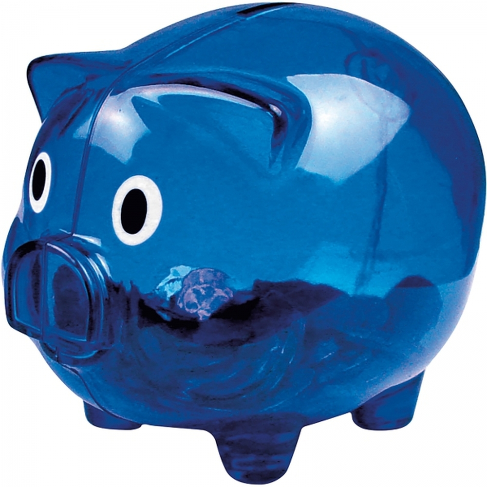 Zabawna świnka – skarbonka wykonana z transparentnego plastiku.