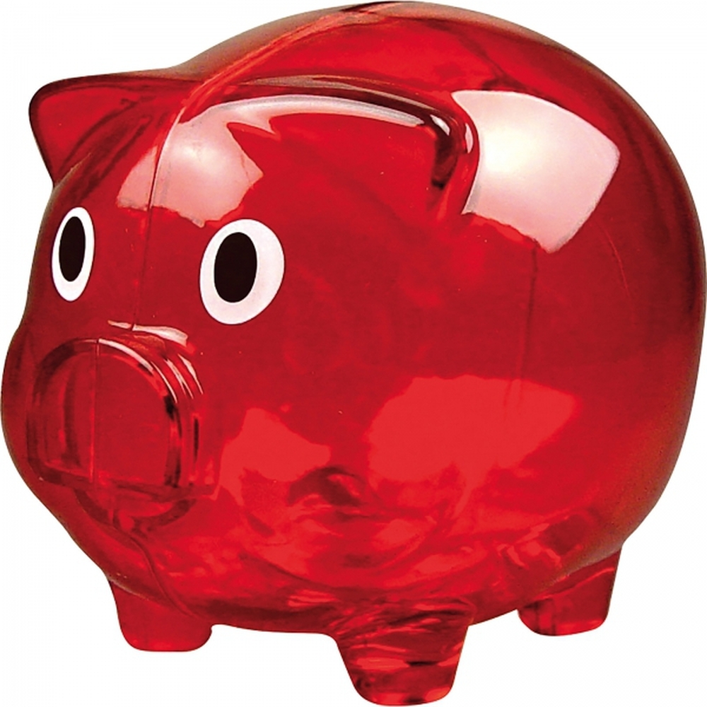 Zabawna świnka – skarbonka wykonana z transparentnego plastiku.