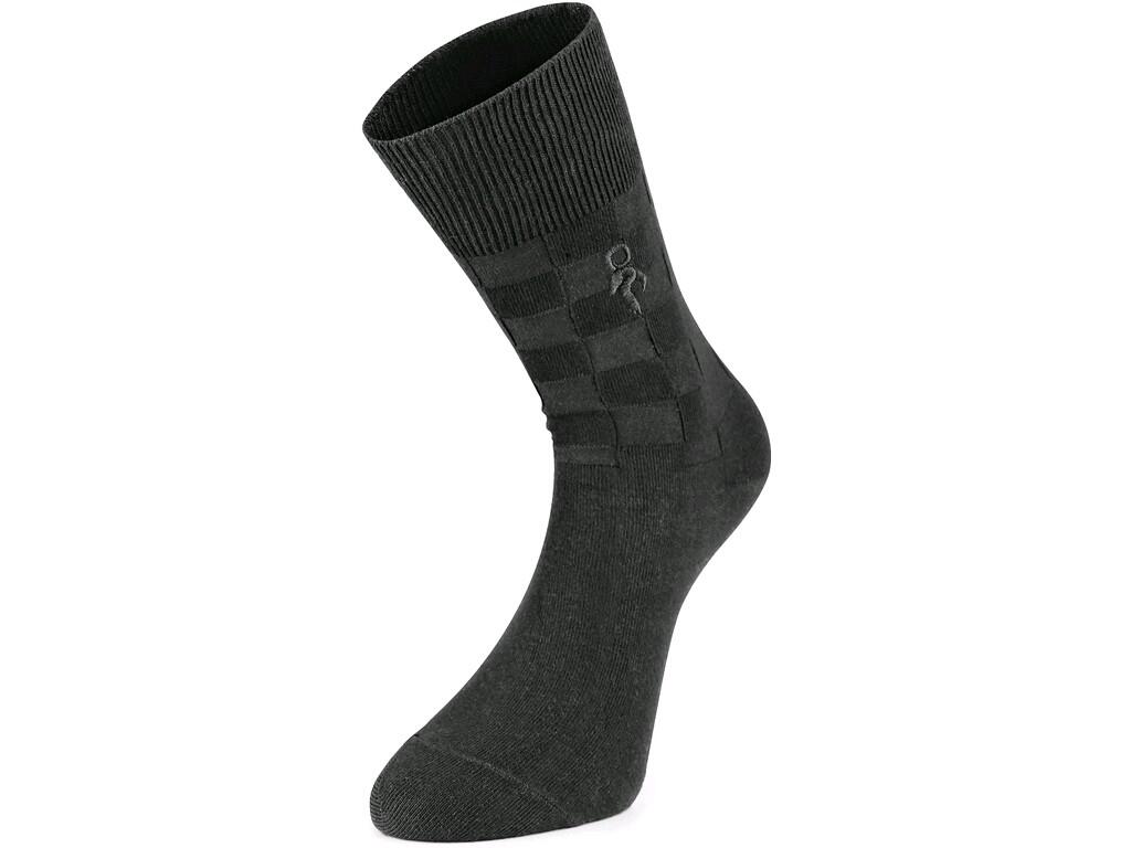 Klasyczne skarpety elastyczne wykonane z dzianiny ze wzorem w górnej części. Nadają się na sport i do pracy. Dzięki miękkiemu brzegowi skarpety są wygodne przez cały dzień. Opakowanie zawiera 3 pary skarpet.