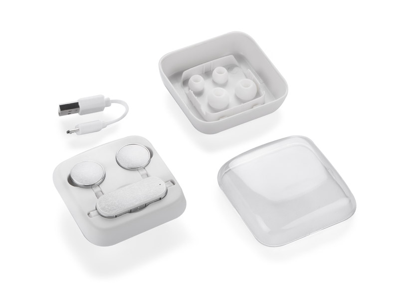 Słuchawki bezprzewodowe FREE stanowią kwintesencję gadżetu reklamowego. Szerokie możliwości znakowania różnymi technikami to ich wyróżnik. Zapakowane są w poręczne, plastikowe etui, które jeszcze bardziej podkreśla ich atrakcyjność. Dane techniczne: wersja bluetooth 4.2, bateria w słuchawce o pojemności 55 mAh, czas działania 4-5 godz., czas czuwania 120 godz., czas ładowania 2 godz., wymiary słuchawki: ø 20 x 23 mm, długość kabla 590 mm.