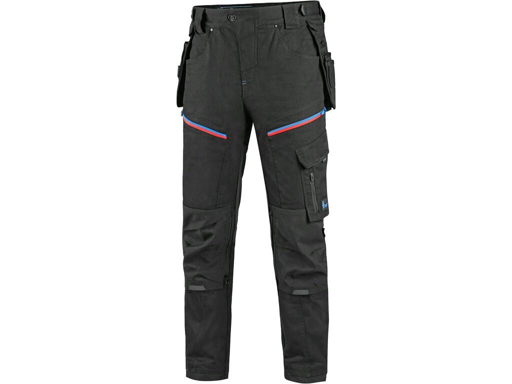 Spodnie CXS LEONIS, męskie, kolor czarny, niebiesko-czerwone elementy, roz. 46