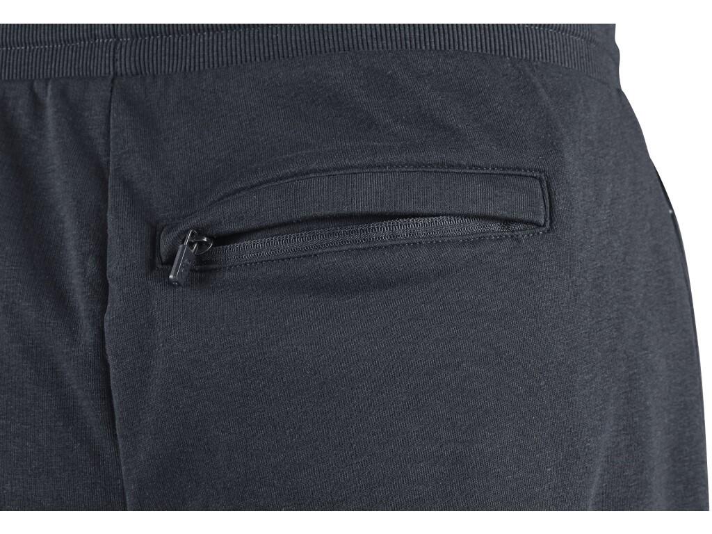 Męskie lekkie spodnie dresowe, pas i nogawki z żebrowanej lamówki elastycznej, boczne kieszenie zapinane na zamek, tylna kieszeń zapinana na zamek.