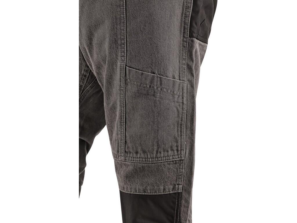 Męskie jeansy, elastyczny pas ze szlufkami na pasek i zawieszką, pas z wewnętrzną przeciwpoślizgową gumą, 2 przednie kieszenie, 2 kieszenie z tyłu wykonane z materiału CORDURA, boczne kieszenie wielofunkcyjne, na prawej kieszeni szlufka na młotek, kolana wzmocnione poliestrem CORDURA.