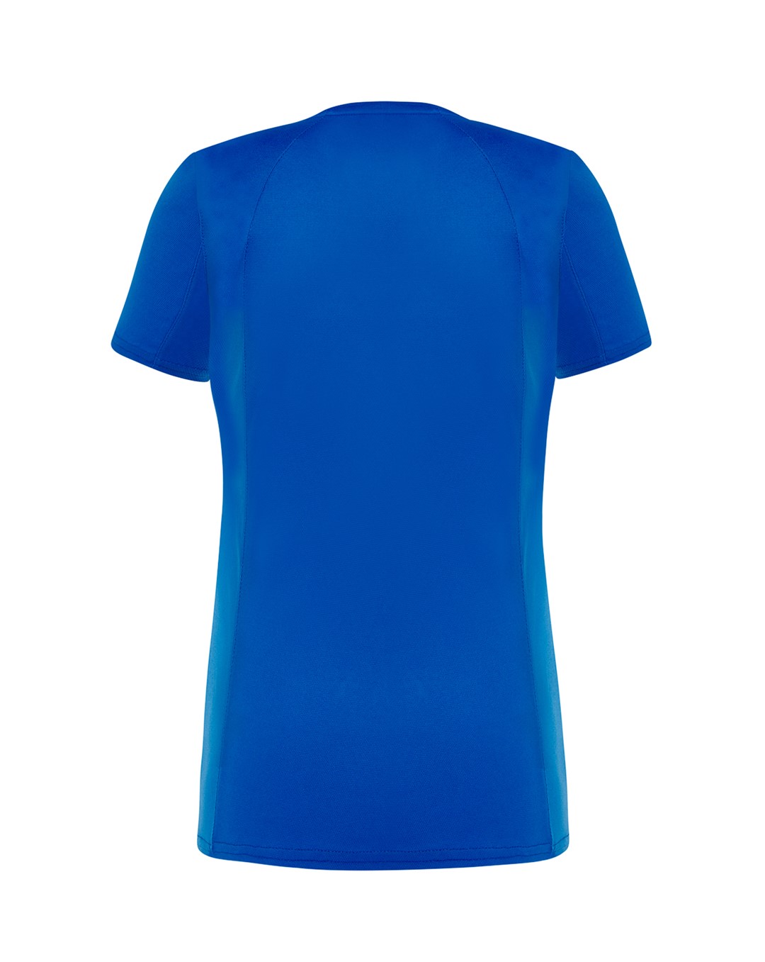 Damski t-shirt sportowy. Dekoracyjne przeszycia z przodu, z tyłu i na rękawach. Krój dopasowany do sylwetki. Oddychający materiał szybkoschnący. 100% poliester teksturowany.