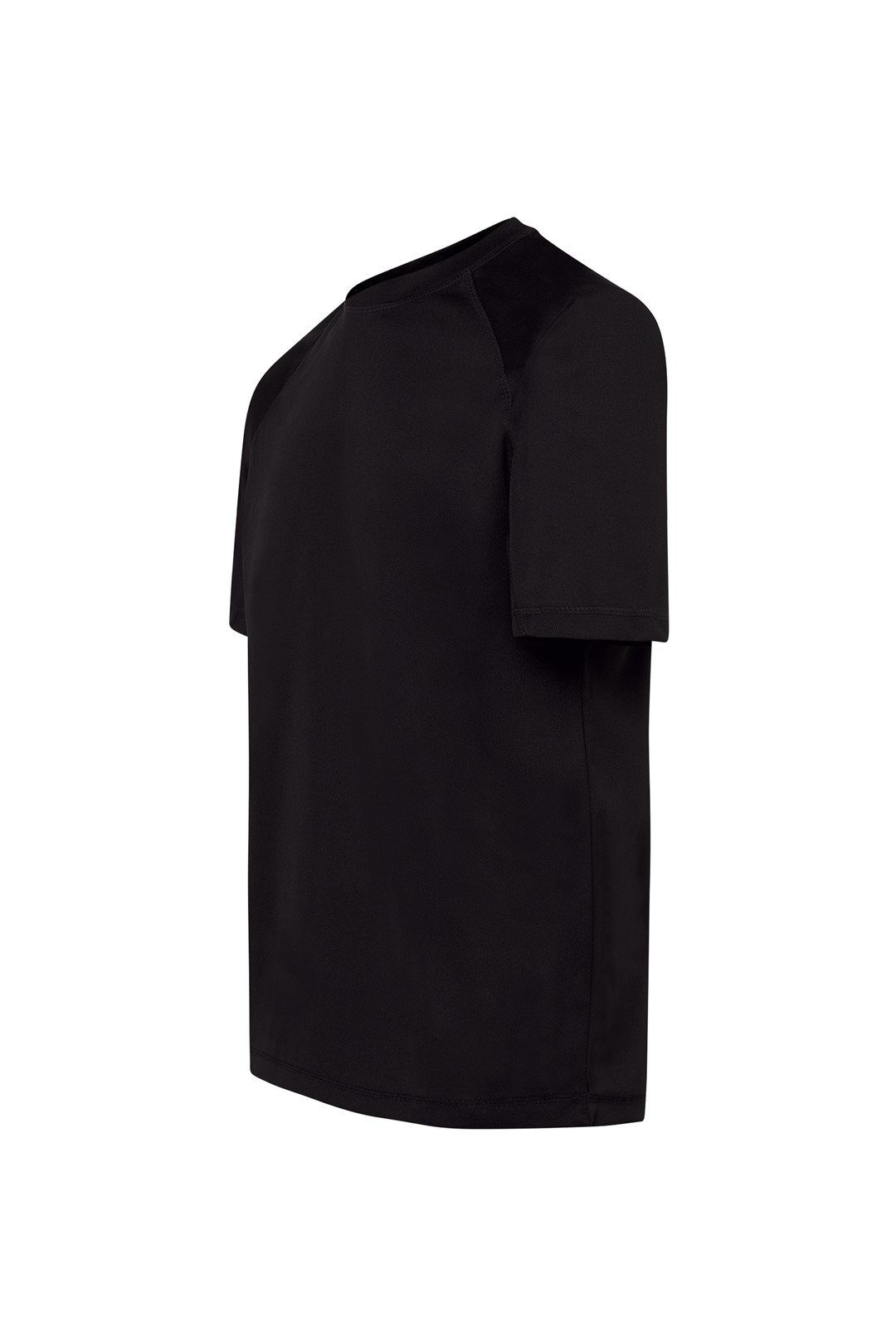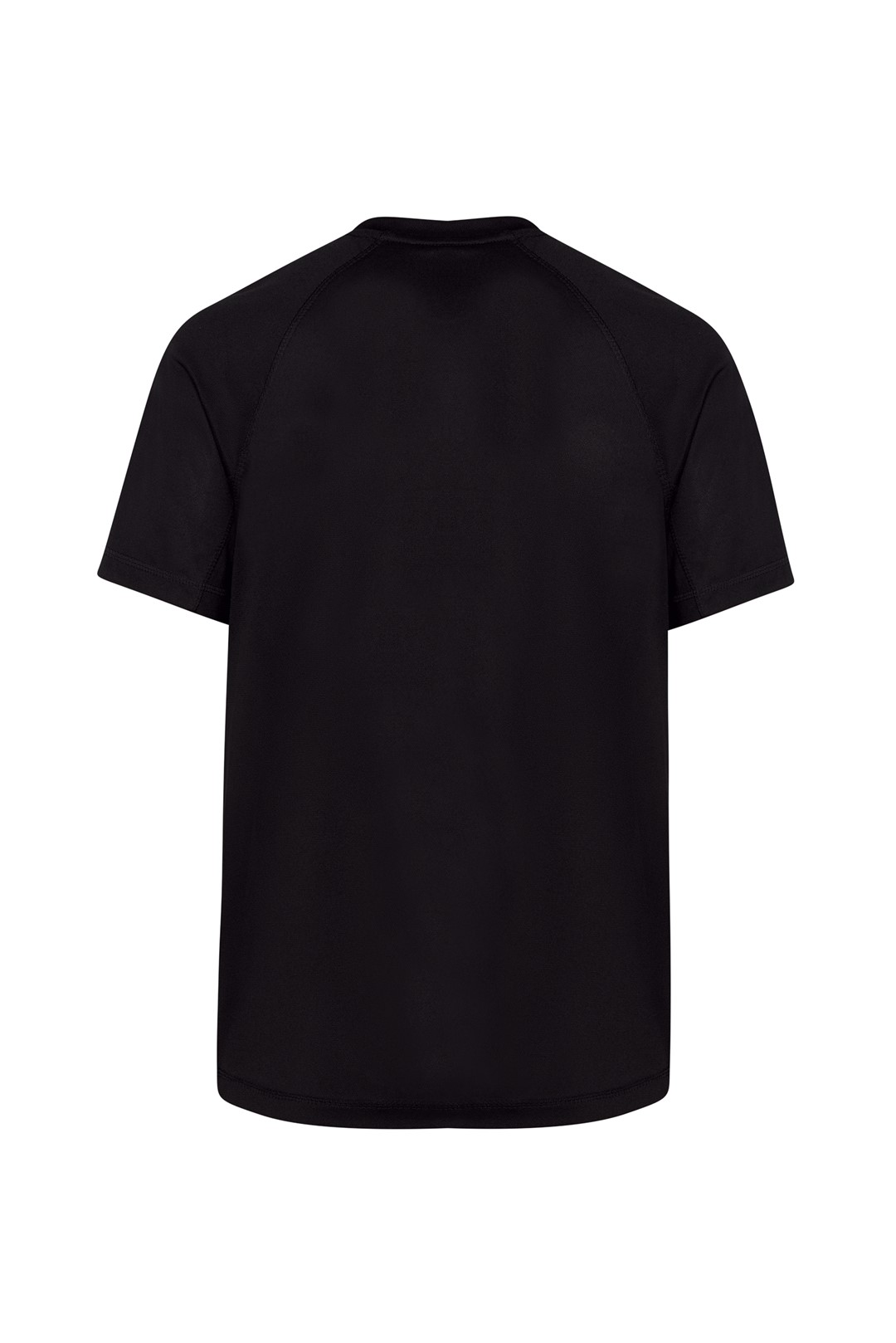 T-shirt sportowy. Krój reglan ze szwem dekoracyjnym w połowie rękawa. Oddychający materiał szybkoschnący. 100% poliester teksturowany.