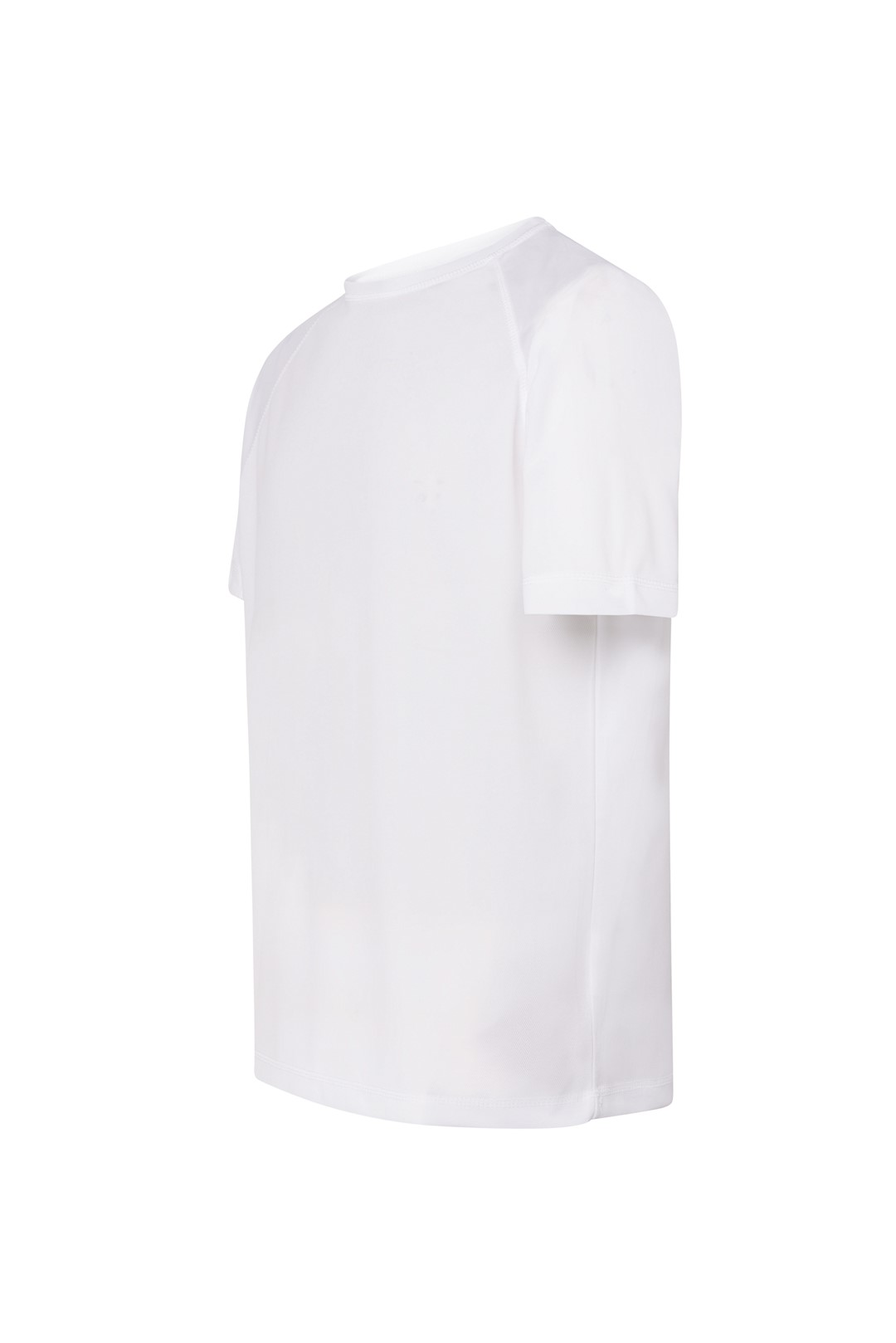 T-shirt sportowy. Krój reglan ze szwem dekoracyjnym w połowie rękawa. Oddychający materiał szybkoschnący. 100% poliester teksturowany.