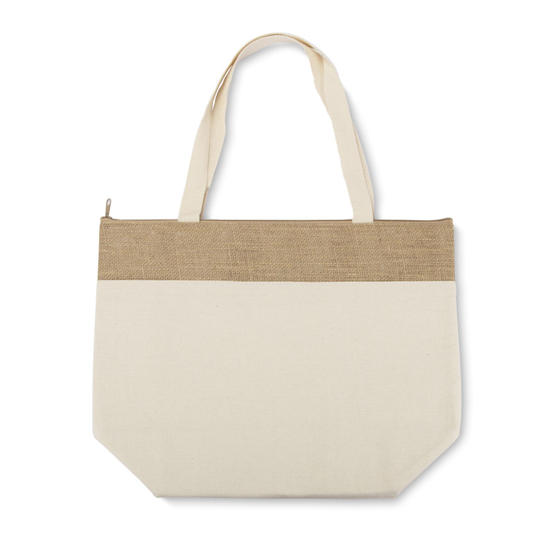 Bawełniana torba JUTO o gramaturze 340 g/m² to wyjątkowo praktyczny gadżet reklamowy. Długie uchwyty torby zapewniają wygodę noszenia na ramieniu, a szerokie dno umożliwia łatwe pakowanie większych przedmiotów. Jutowe wykończenie torby JUTO nadaje jej naturalny charakter i wyróżnia ją spośród innych modeli. Największym atutem torby jest warstwa termoizolacyjna, która skutecznie utrzymuje temperaturę przenoszonych produktów, idealnie sprawdzając się na zakupy, pikniki czy plażę. Duża powierzchnia do znakowania pozwala na skuteczną promocję marki.