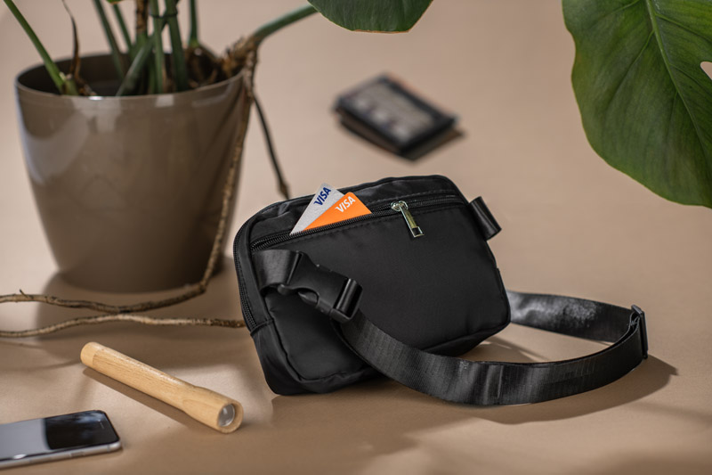 Torebka biodrowa KIMI to uniwersalna saszetka łącząca prosty design z praktycznymi rozwiązaniami. Główna komora zapinana na zamek błyskawiczny pomieści najpotrzebniejsze drobiazgi, a dodatkowa kieszonka umieszczona z tyłu – od strony ciała – zapewnia bezpieczne przechowywanie dokumentów lub telefonu. Regulowany pasek umożliwia noszenie zarówno na biodrach, jak i na skos przez ramię. Model odpowiedni dla kobiet i mężczyzn, sprawdzi się w podróży, w pracy i na co dzień. Produkt dostępny z możliwością znakowania.