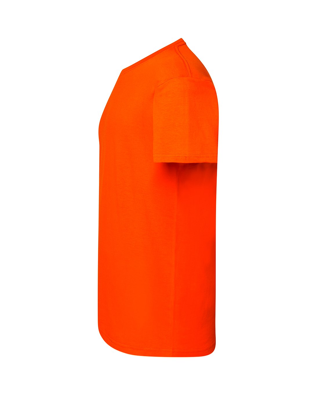 T-shirt męski z krótkim rękawem. Brak bocznych szwów. Podwójne szwy na ramionach. Wzmocniony lycrą ściągacz. Taśma wzmacniająca. 100% bawełna stabilizowana.