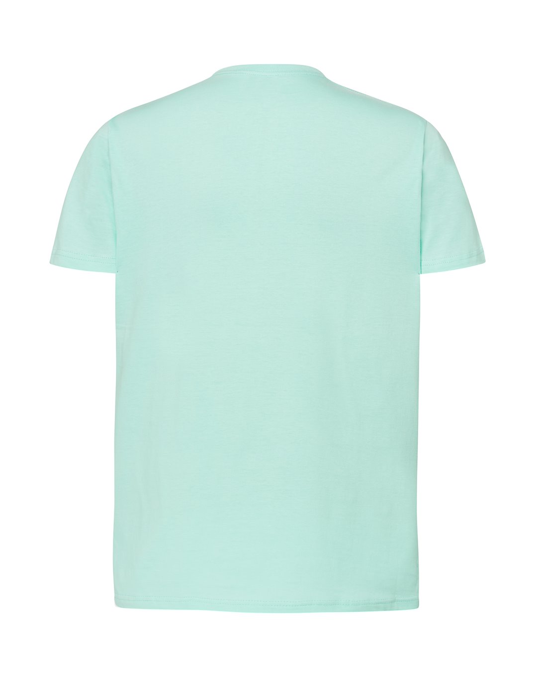 T-shirt męski z krótkim rękawem. Brak bocznych szwów. Podwójne szwy na ramionach. Wzmocniony lycrą ściągacz. Taśma wzmacniająca. 100% bawełna stabilizowana.