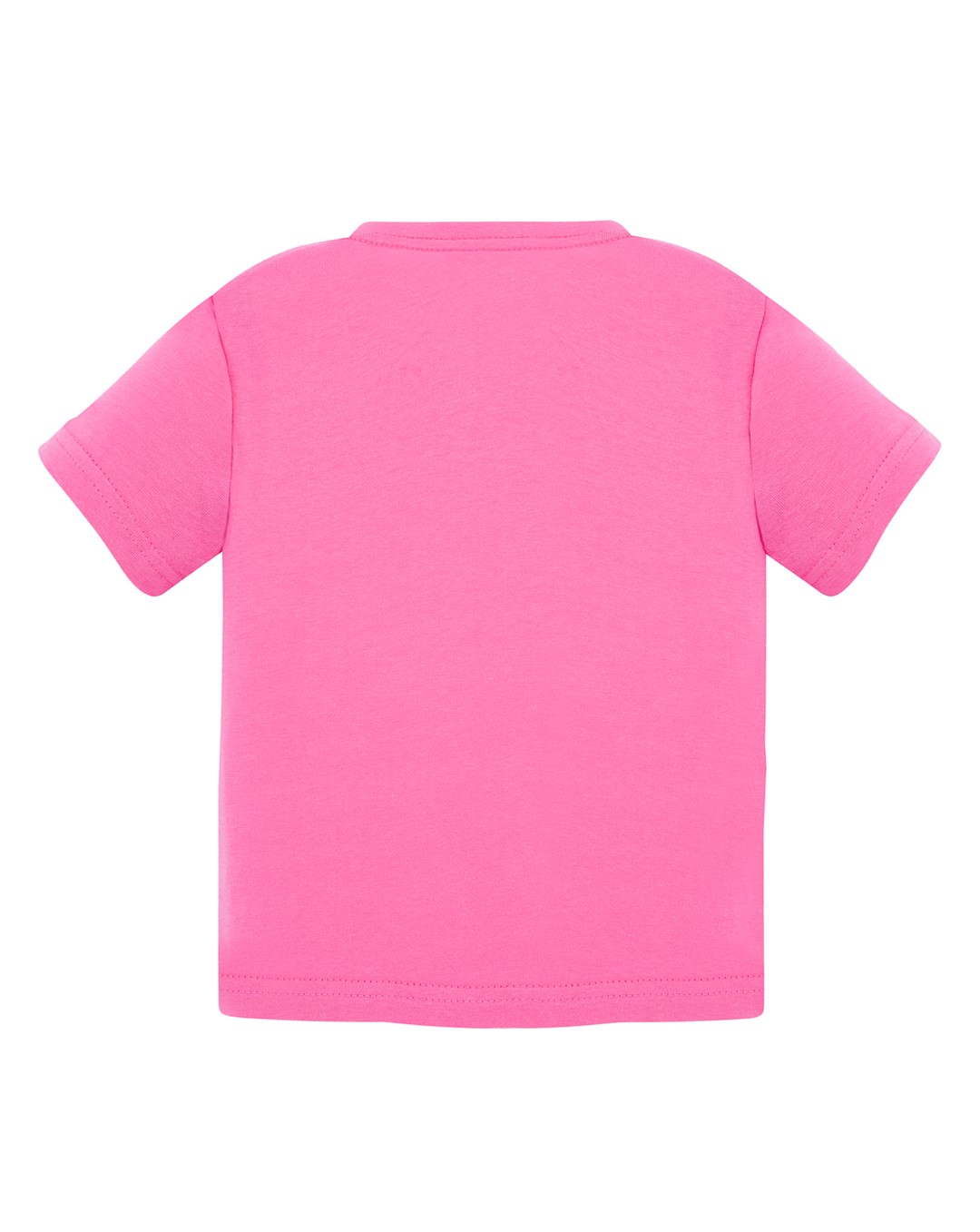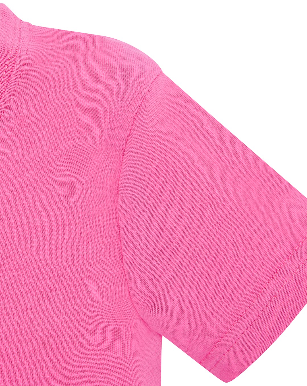 Koszulka dla niemowląt z krótkim rękawem. Rozmiar 0 zapinany na guziki na lewym ramieniu. Wzmocniony lycrą ściągacz. Brak bocznych szwów. Podwójne szwy na ramionach. Taśma wzmacniająca. 100% bawełna stabilizowana