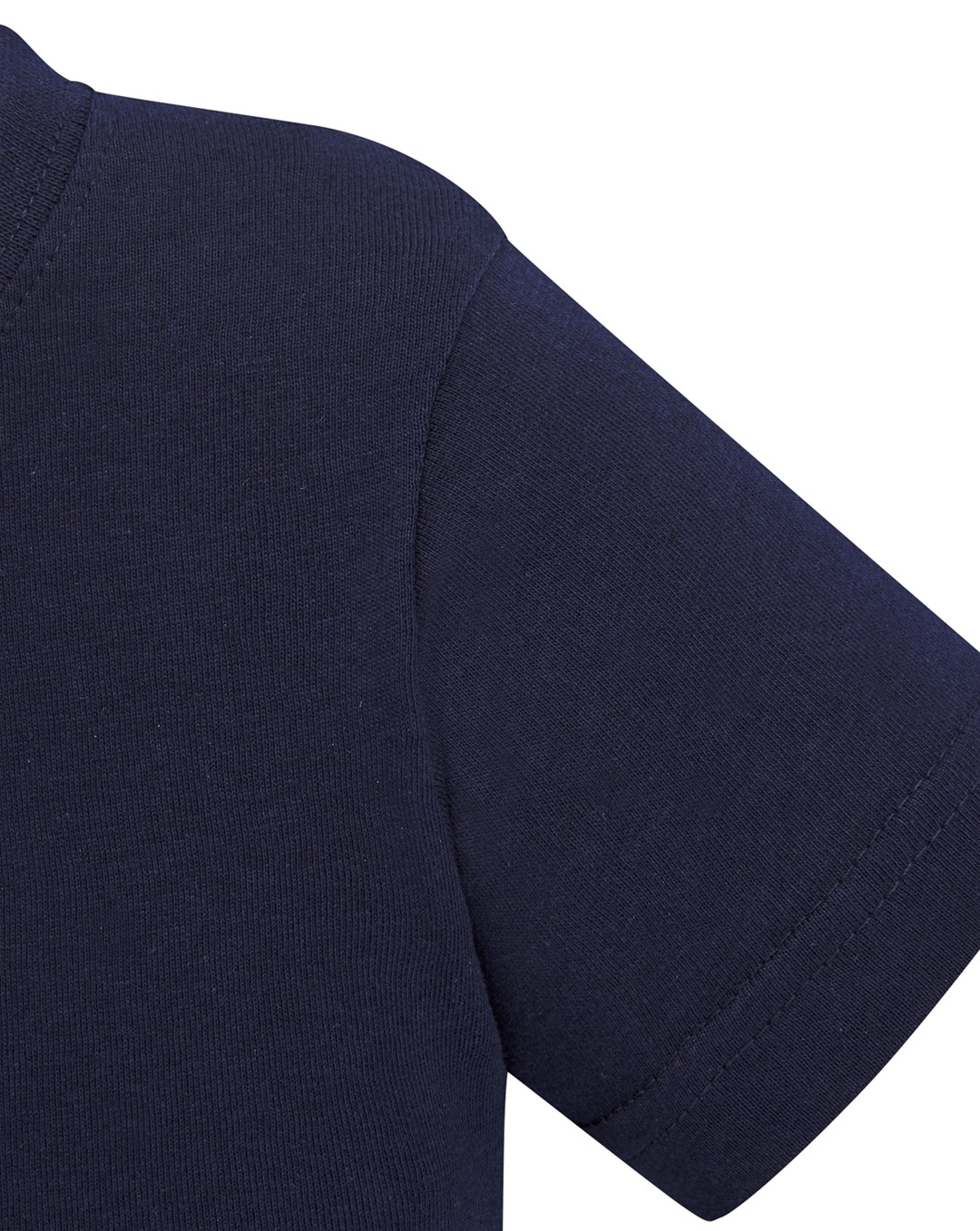 Koszulka dla niemowląt z krótkim rękawem. Rozmiar 0 zapinany na guziki na lewym ramieniu. Wzmocniony lycrą ściągacz. Brak bocznych szwów. Podwójne szwy na ramionach. Taśma wzmacniająca. 100% bawełna stabilizowana