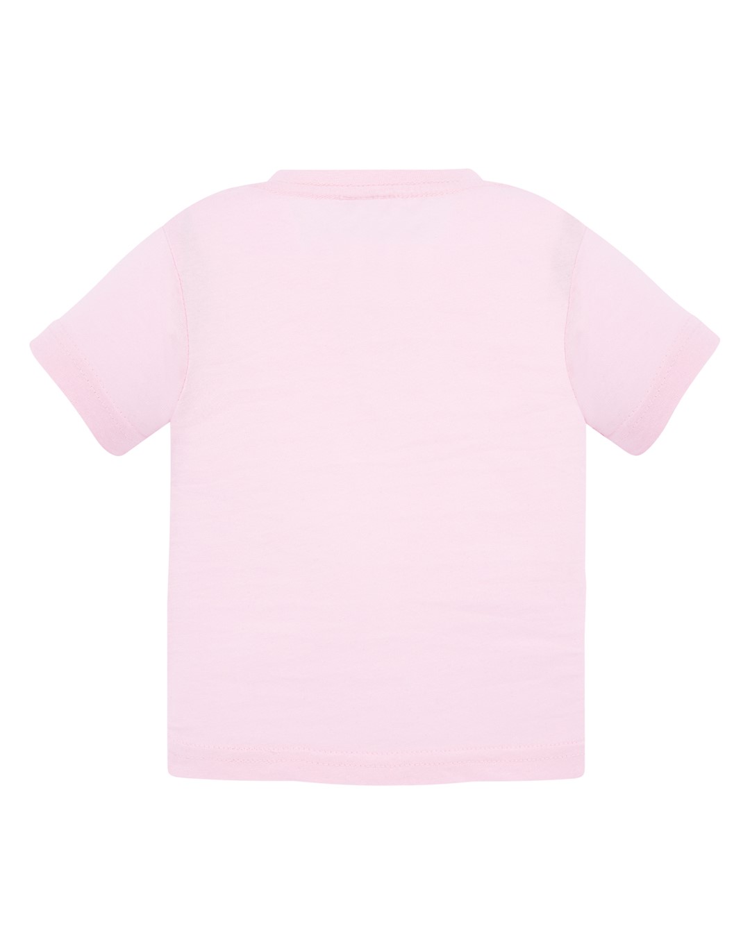 Koszulka dla niemowląt z krótkim rękawem. Rozmiar 0 zapinany na guziki na lewym ramieniu. Wzmocniony lycrą ściągacz. Brak bocznych szwów. Podwójne szwy na ramionach. Taśma wzmacniająca. 100% bawełna stabilizowana