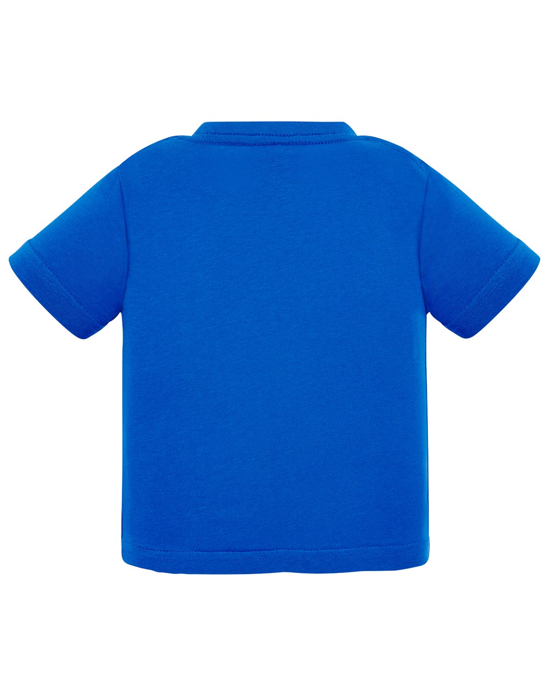 Koszulka dla niemowląt z krótkim rękawem. Rozmiar 0 zapinany na guziki na lewym ramieniu. Wzmocniony lycrą ściągacz. Brak bocznych szwów. Podwójne szwy na ramionach. Taśma wzmacniająca. 100% bawełna stabilizowana