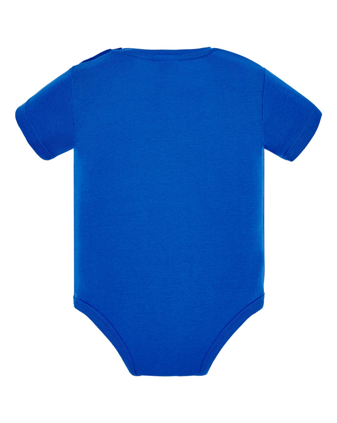 Body dziecięce z krótkim rękawem. Wykończenie pod szyją – lycrą. Zapinane na ramieniu i w kroku. Ściągacz 1×1. 100% bawełna.